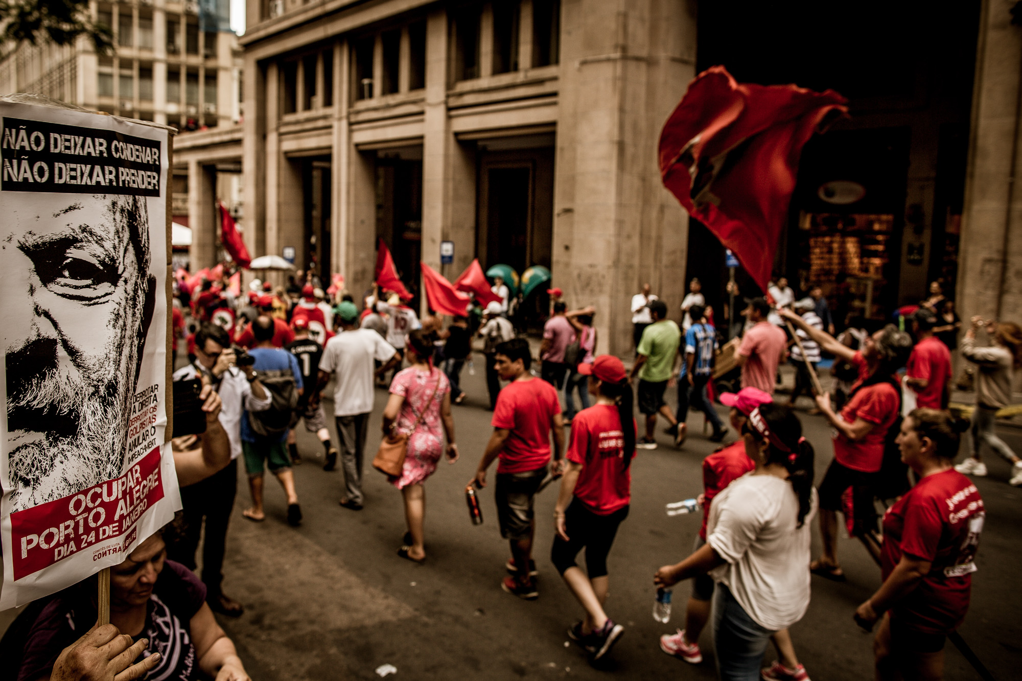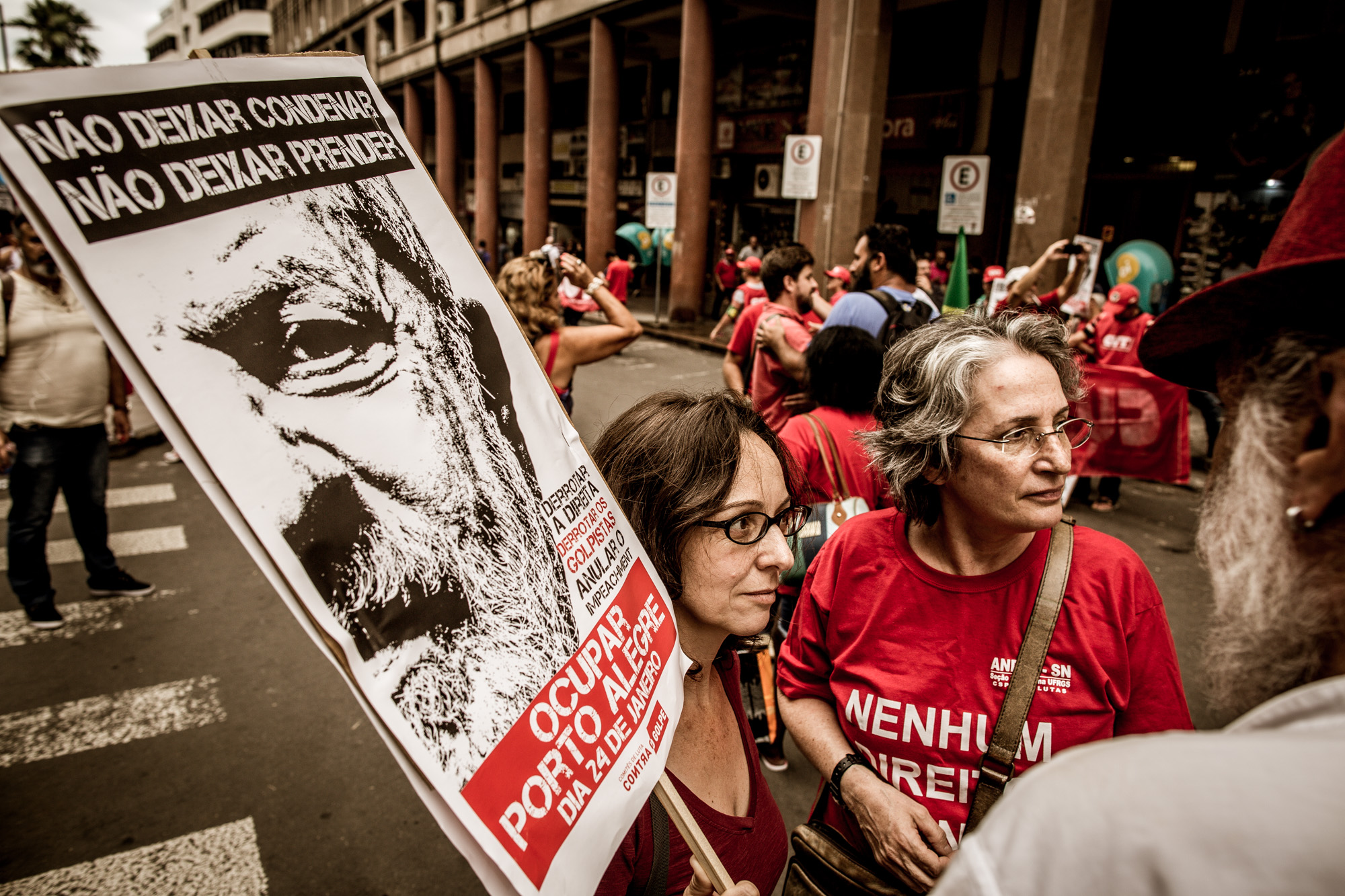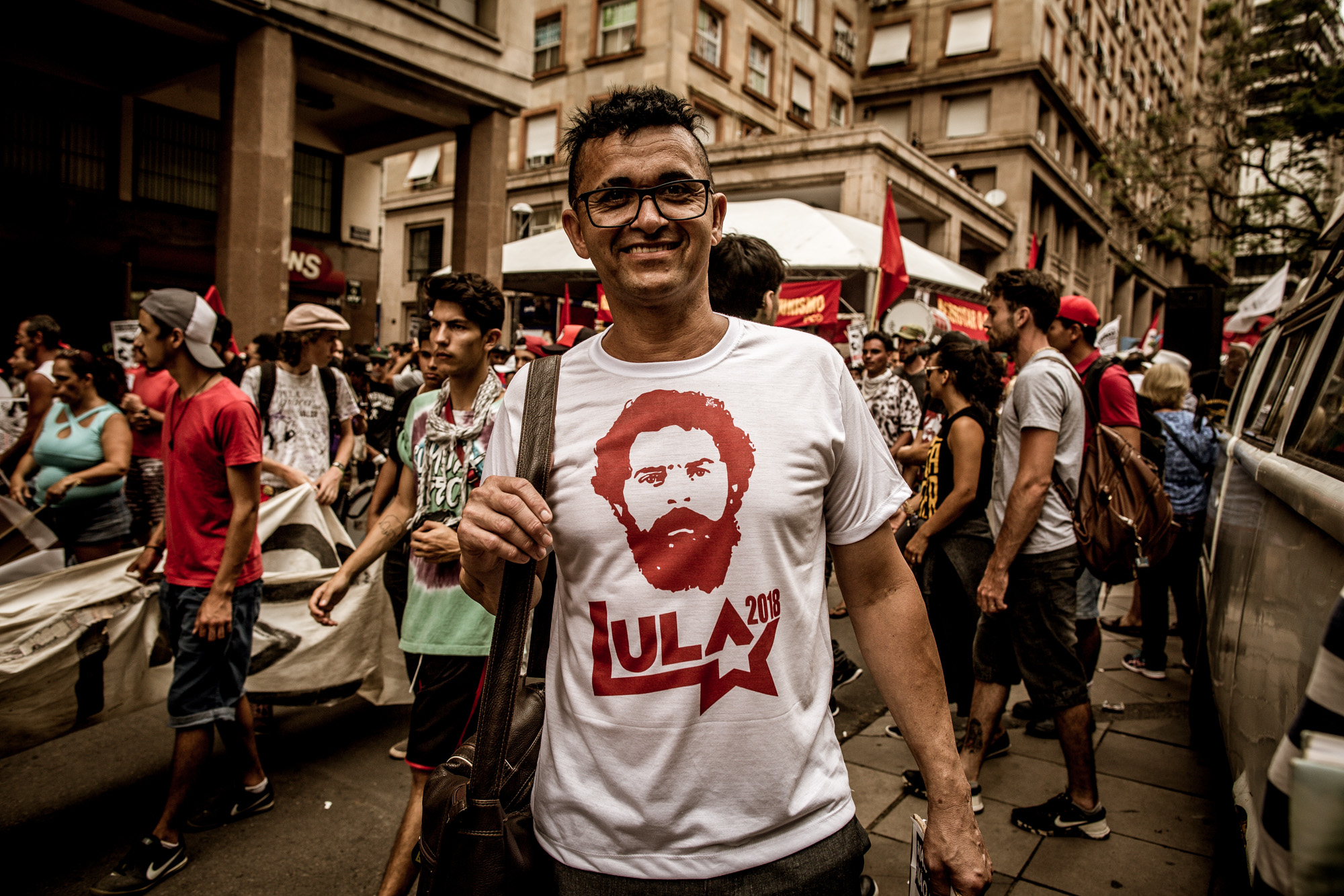 O mais tradicional ponto de manifestações de Porto Alegre foi tomado por uma maré vermelha. A Esquina Democrática, patrimônio cultural da capital gaúcha, pintou-se com as cores do povo. A cidade que em 1961 foi palco de um grande movimento de resistência sob liderança do então governador Leonel Brizola, voltou a presenciar a resistência daqueles que foram às ruas para defender a democracia e o direito do ex-presidente Lula ser candidato. Vinda de várias regiões do país, a multidão marchou pela Avenida Borges de Medeiros até a Rua das Andradas com a convicção de quem está do lado certo da história.