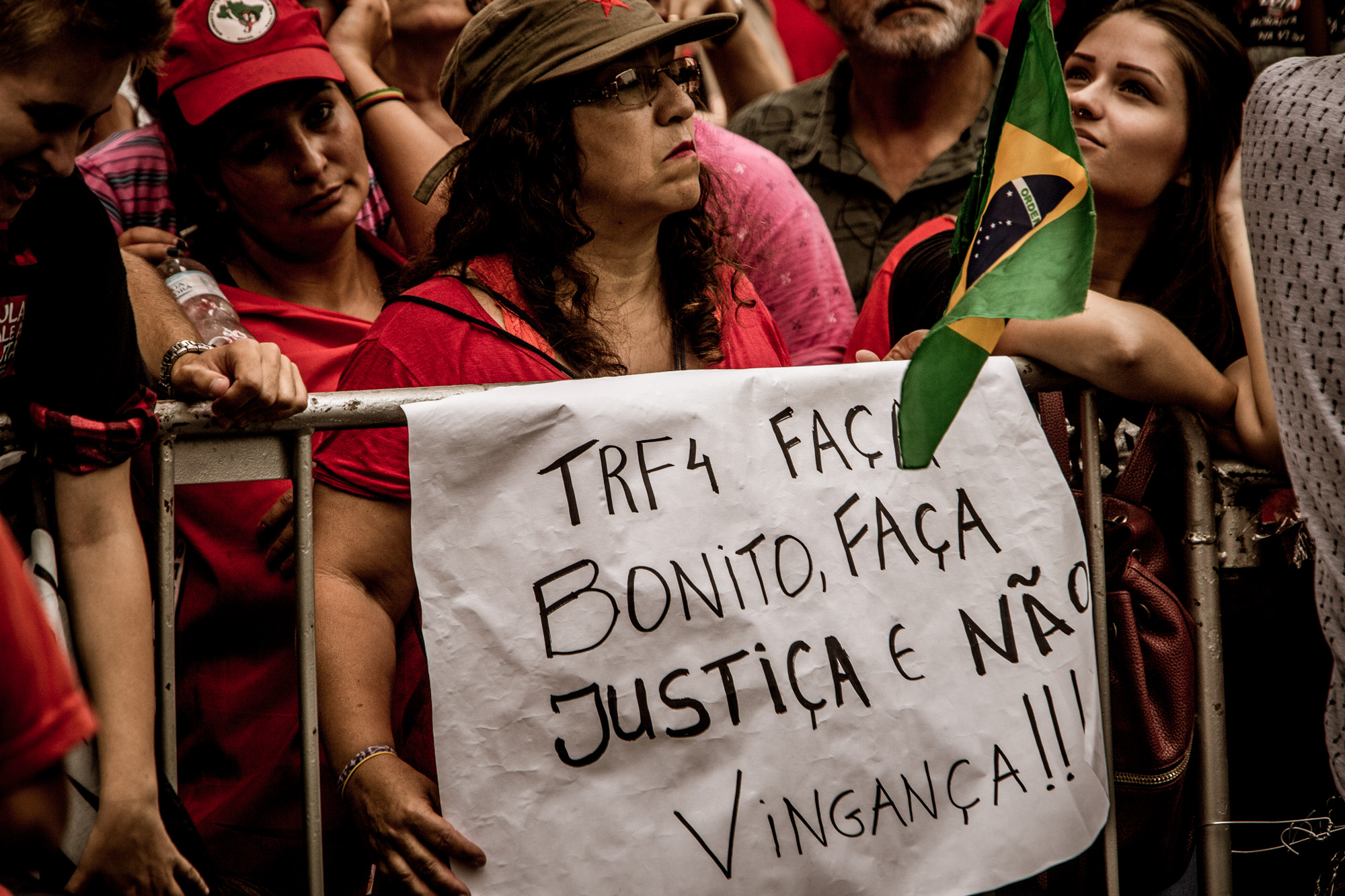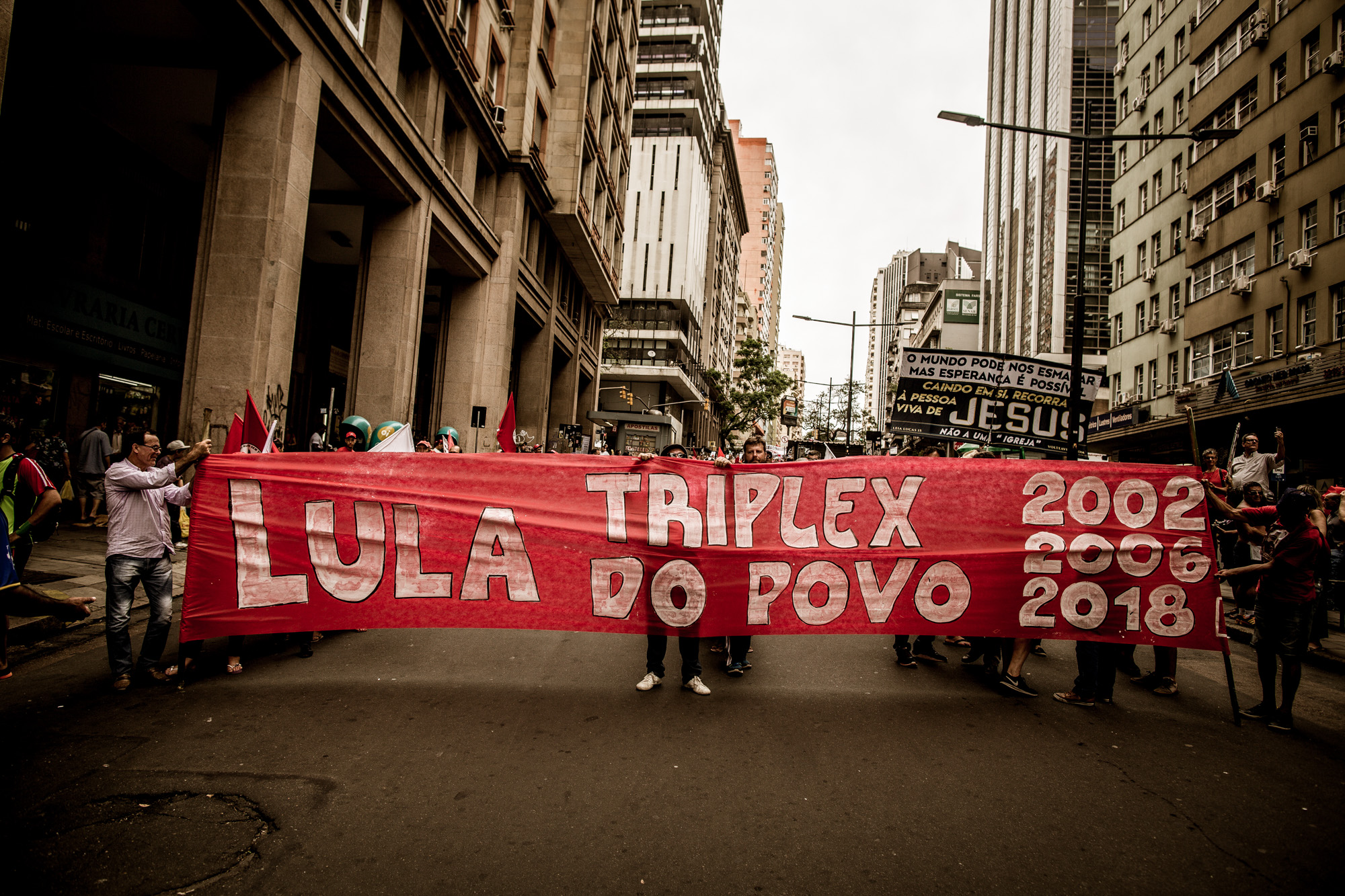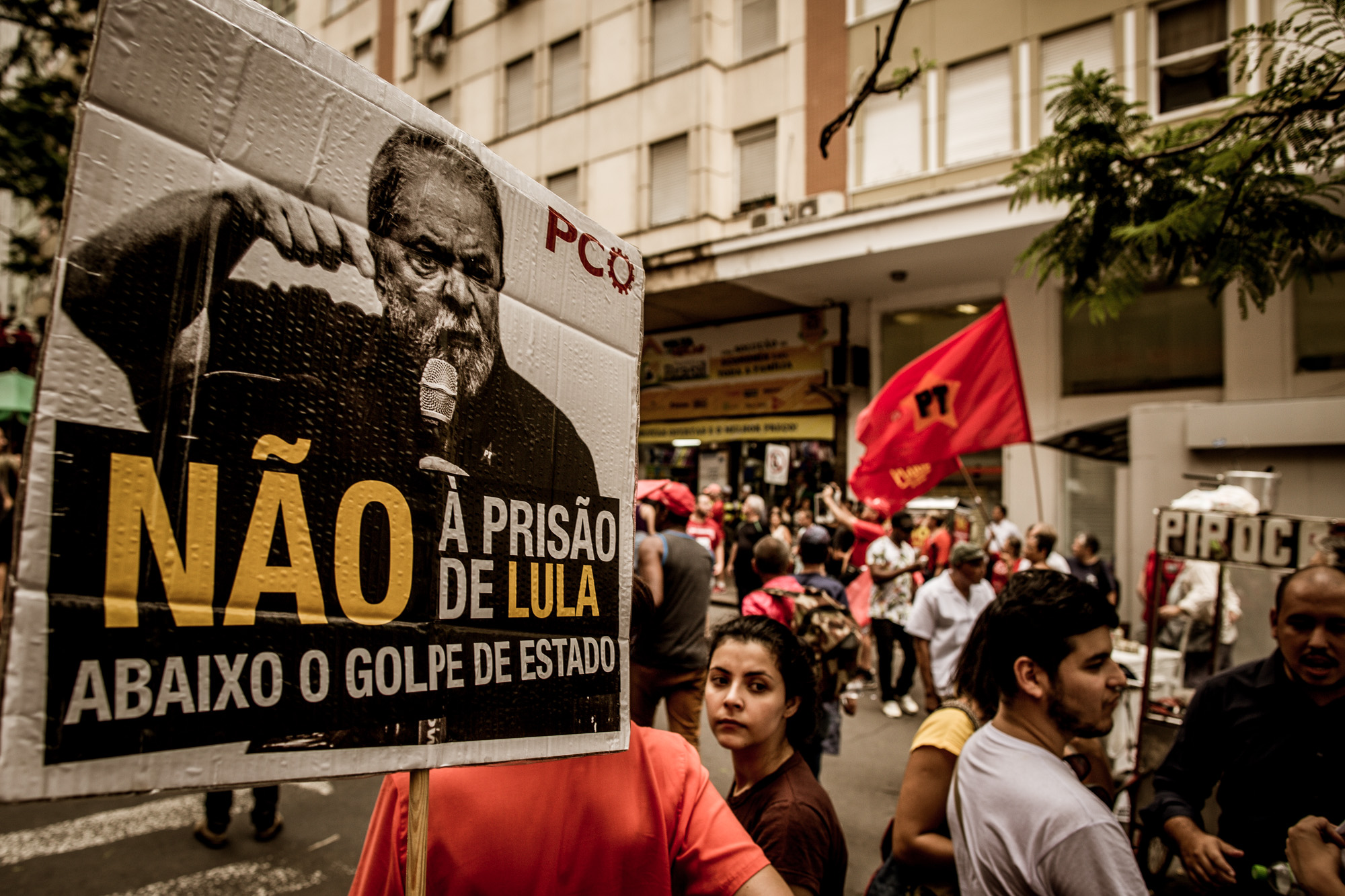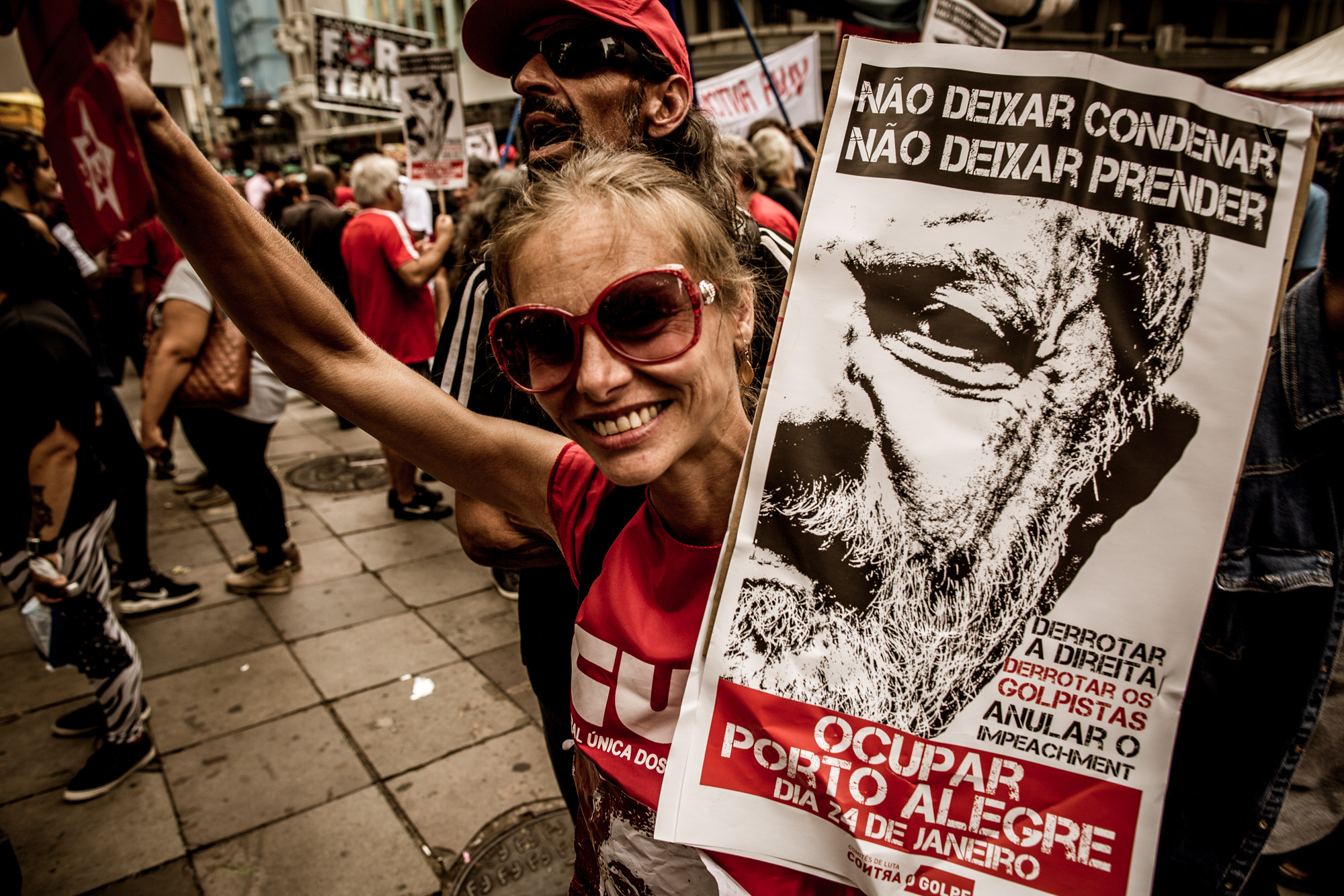O mais tradicional ponto de manifestações de Porto Alegre foi tomado por uma maré vermelha. A Esquina Democrática, patrimônio cultural da capital gaúcha, pintou-se com as cores do povo. A cidade que em 1961 foi palco de um grande movimento de resistência sob liderança do então governador Leonel Brizola, voltou a presenciar a resistência daqueles que foram às ruas para defender a democracia e o direito do ex-presidente Lula ser candidato. Vinda de várias regiões do país, a multidão marchou pela Avenida Borges de Medeiros até a Rua das Andradas com a convicção de quem está do lado certo da história.