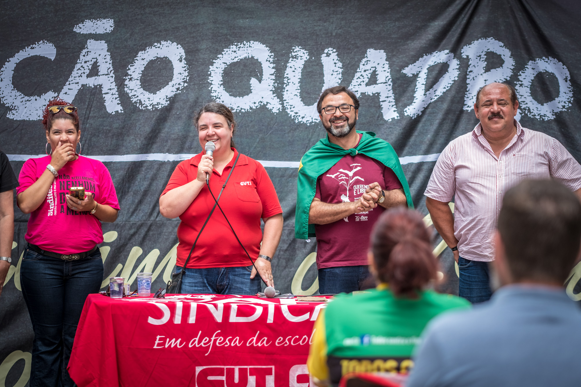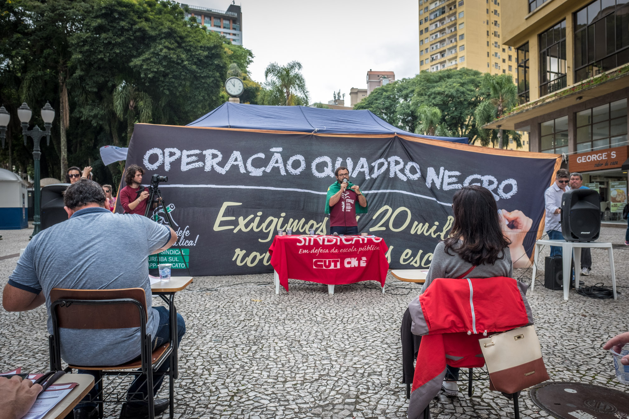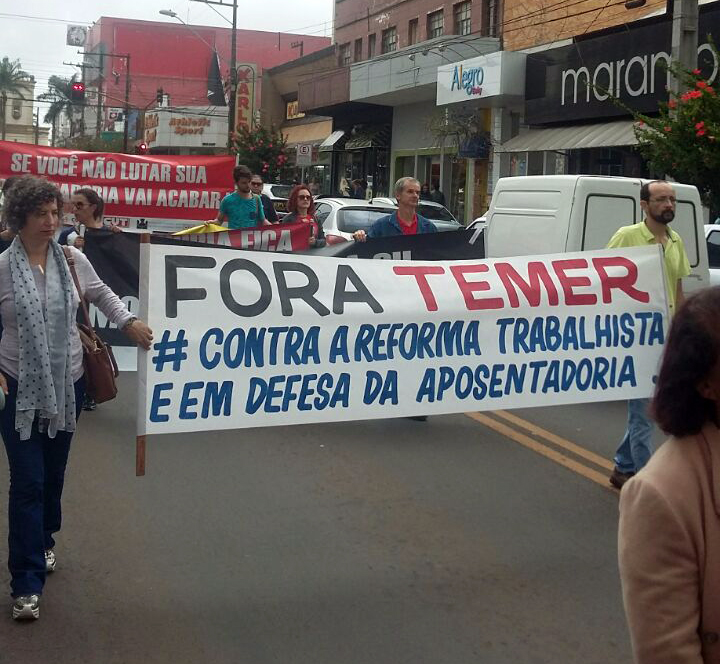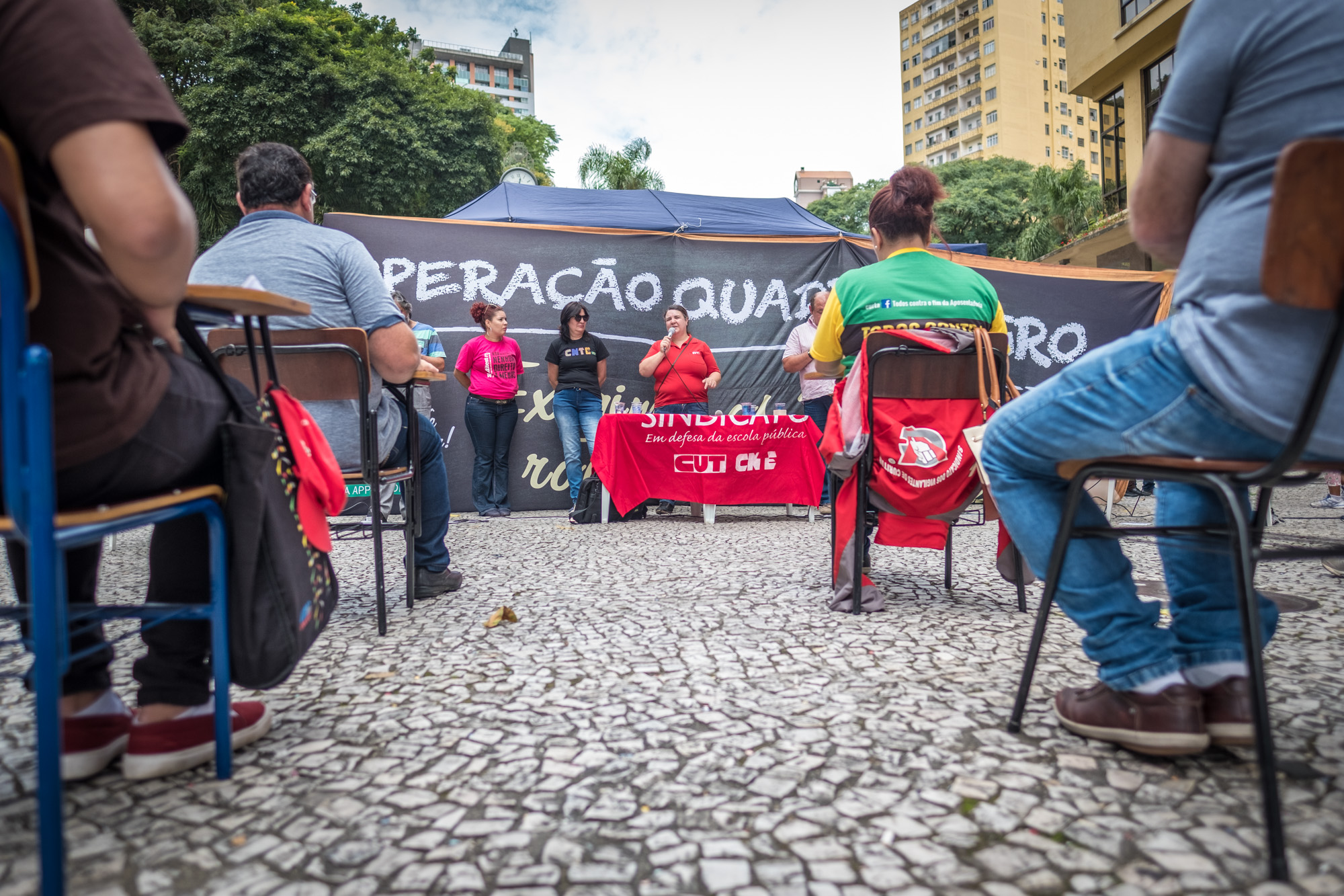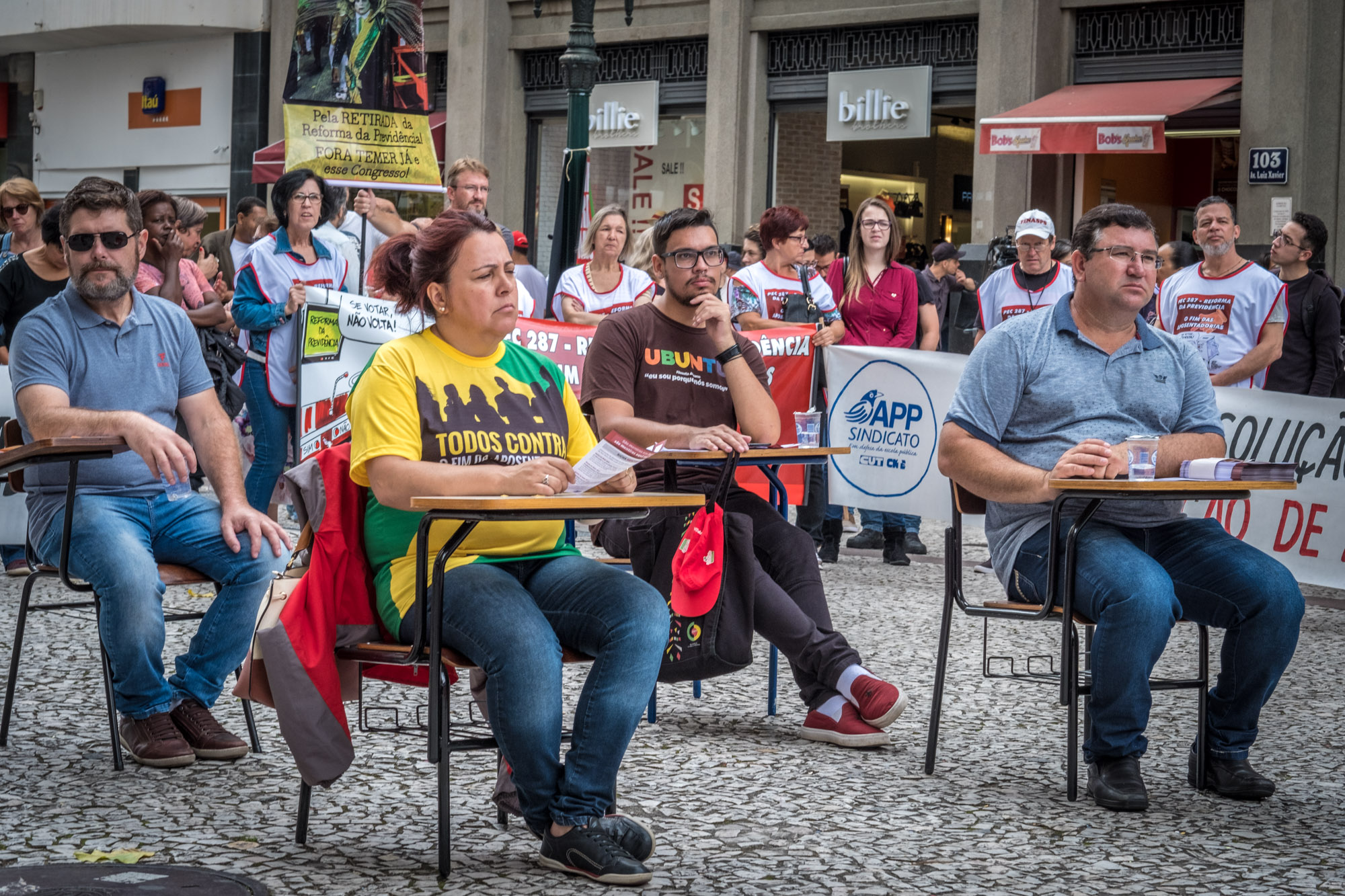 Aula Pública – As manifestações tiveram sequência na Boca Maldita, tradicional centro de movimentação política da capital paranaense. Neste ambiente foi realizada uma aula pública, denunciando as consequências da reforma proposta por Michel Temer (MDB).