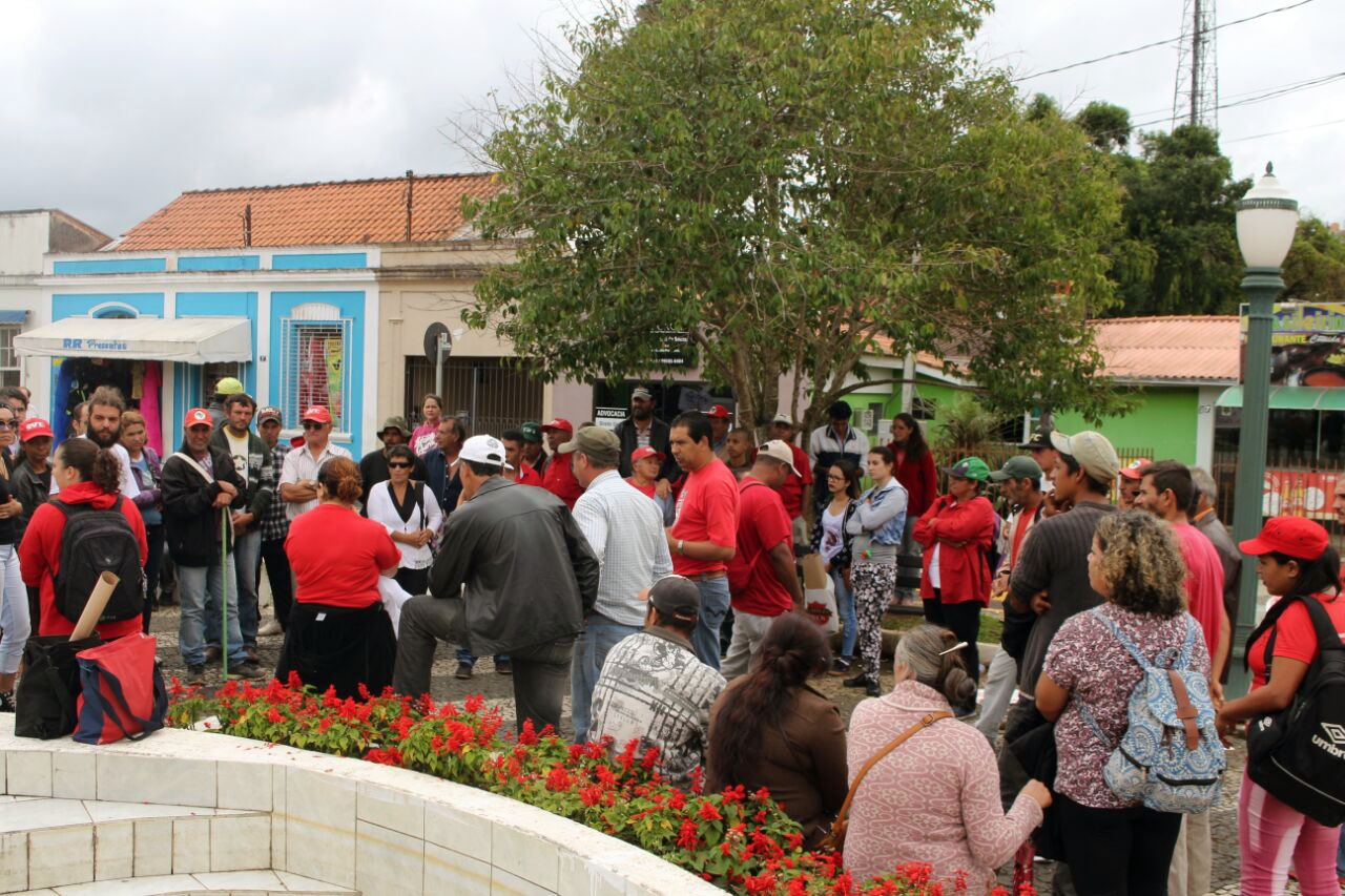 No município de Castro (PR), cerca 250 pessoas fazem uma manifestação na Praça dos Cavalos. O ato faz parte do Dia Nacional de Luta contra a Reforma da Previdência. Eles realizaram uma panfletagem e a tarde participarão de uma marcha na cidade de Ponta Grossa. Fotos: Maria Francelino