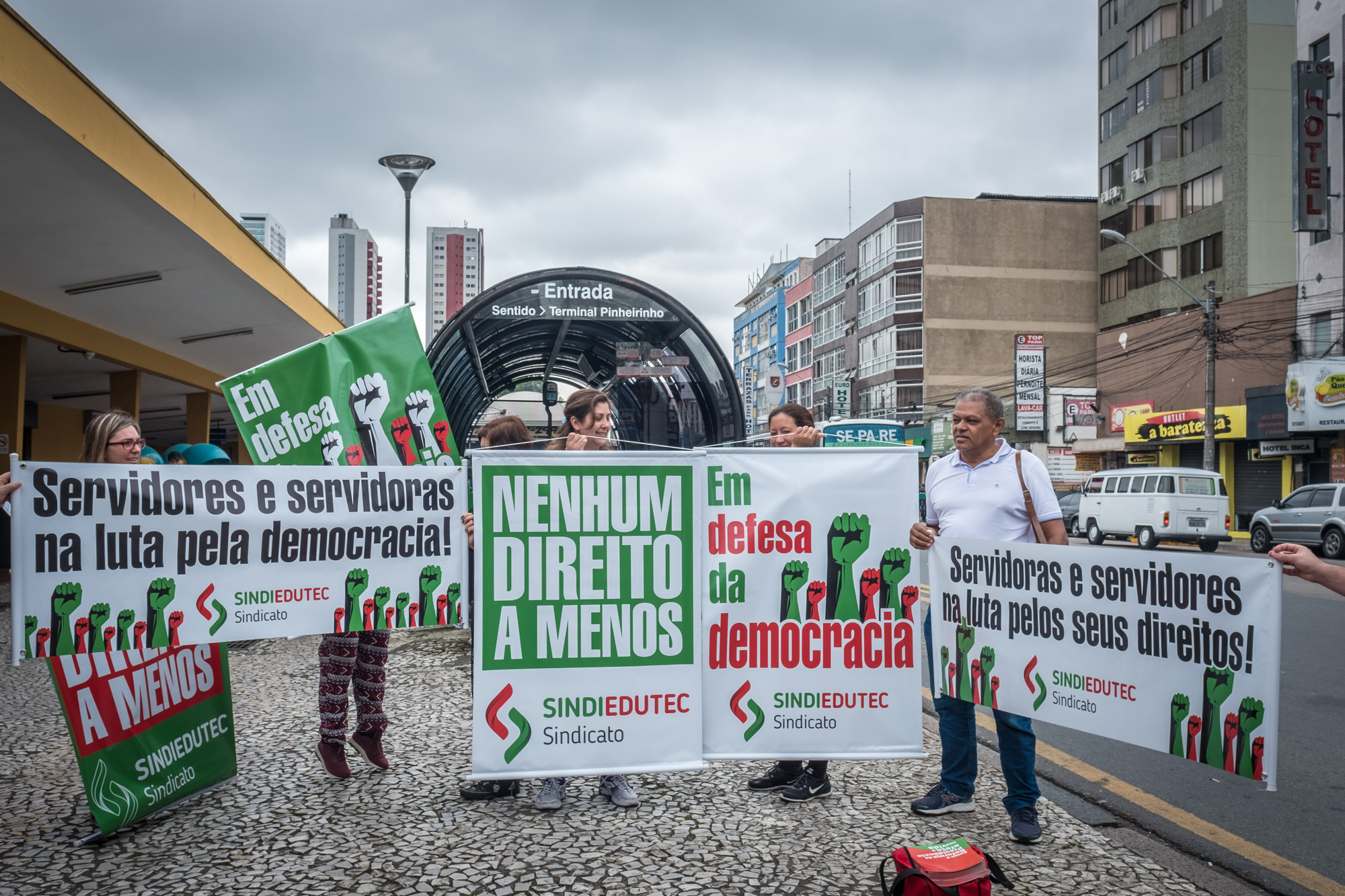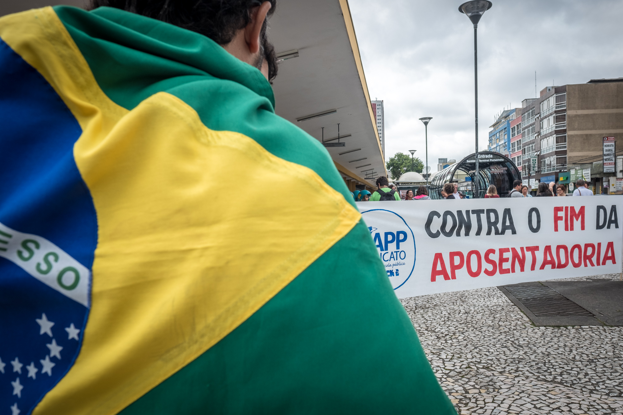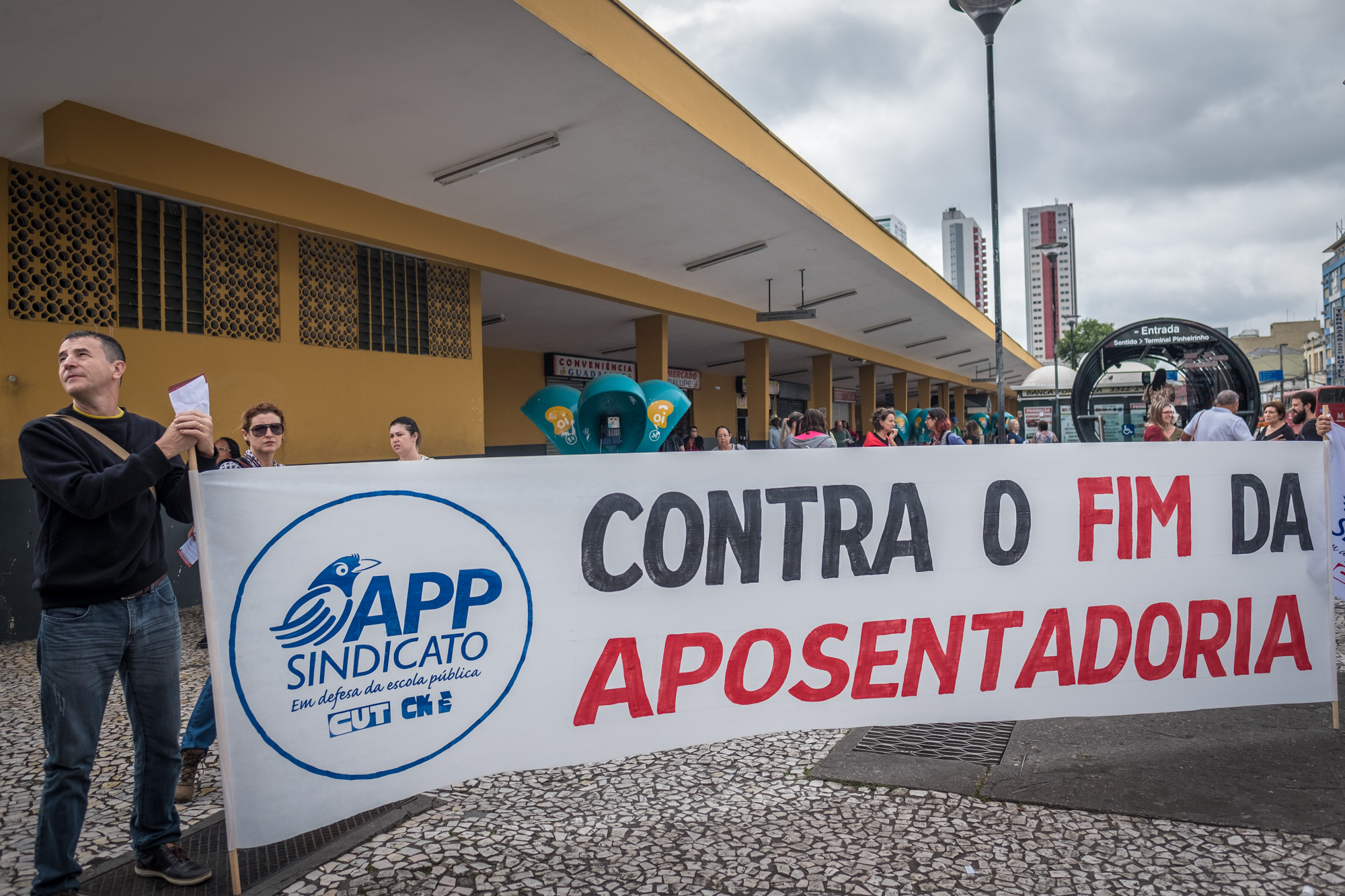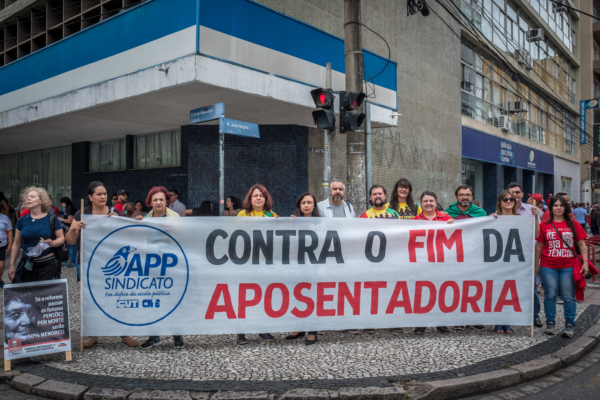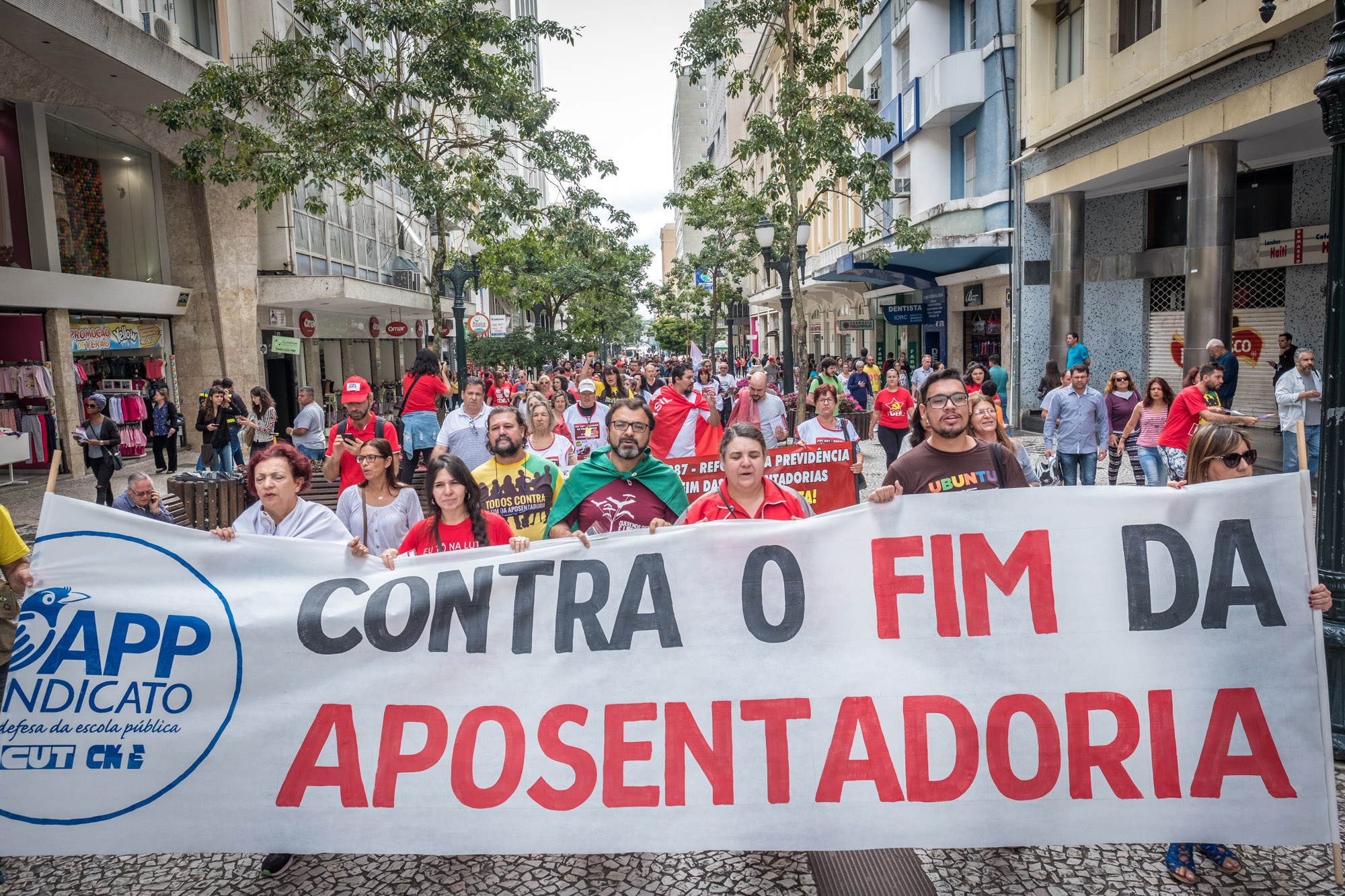 Trabalhadores e trabalhadoras mobilizados em Curitiba contra a Reforma da Previdência. Foto: Gibran Mendes.