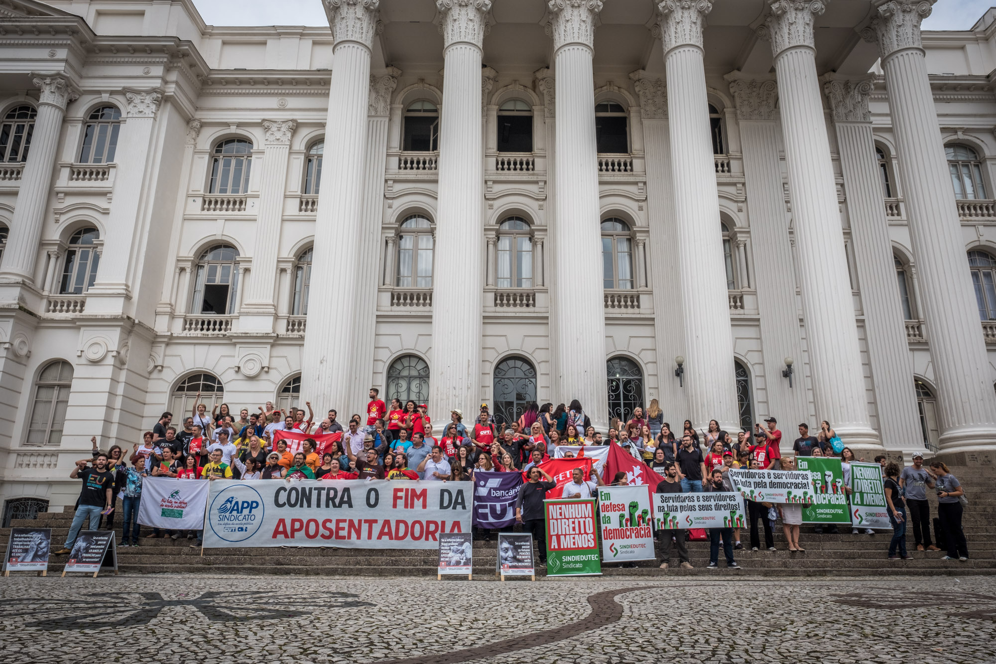 Unidades de produção paralisadas, panfletagem, protesto em frente ao prédio do INSS e aula pública sobre o fim da aposentadoria. Estas foram algumas das ações que marcaram, em Curitiba, o Dia Nacional de Lutas contra a Reforma da Previdência realizado nesta segunda-feira (19) em todo o Brasil.