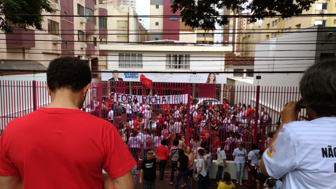Giro pelo Paraná- Outras cidades no interior do Estado também realizaram manifestações nesta segunda-feira (19). Em Maringá, na Região Noroeste, o escritório do deputado federal licenciado e atual ministro da Saúde, Ricardo Barros (PP), foi ocupado durante aproximadamente duas horas.