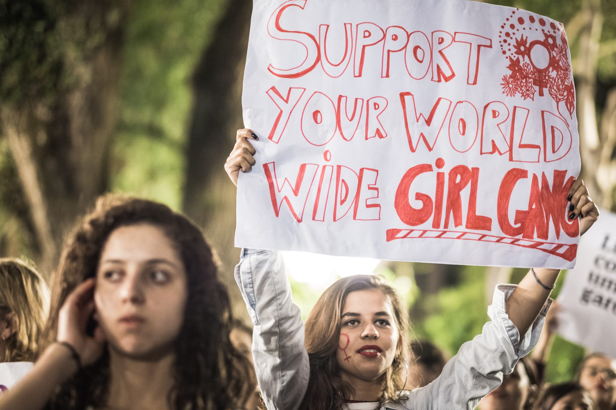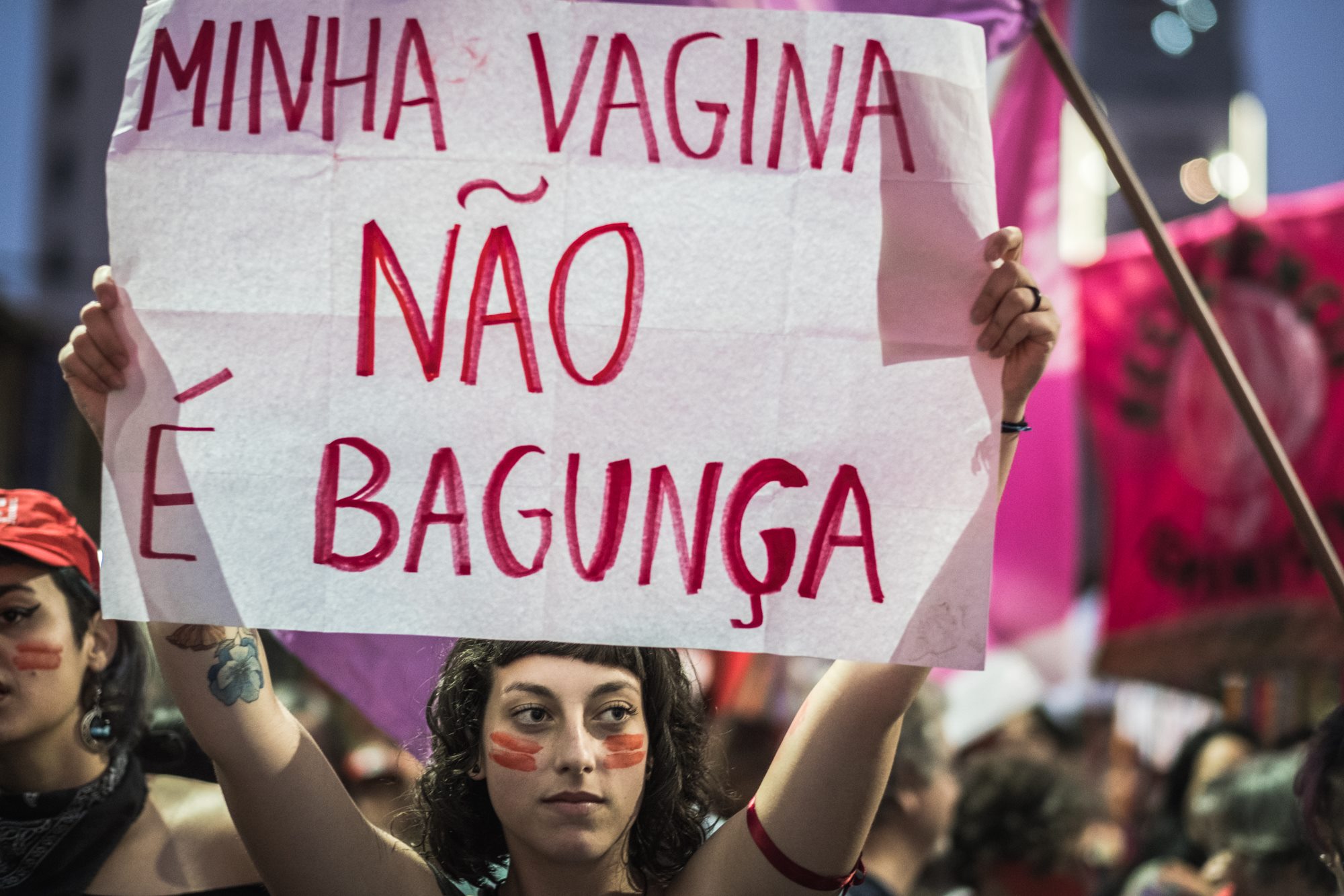 A luta por igualdade no mercado de trabalho esteve em pauta na manifestação. Apesar de serem a metade da população economicamente ativa nas vagas formais de trabalho, as mulheres ainda ganham em média 30% a menos que os homens desempenhando as mesmas funções. “Buscamos equidade salarial. É comprovado que a mulher estuda mais e mesmo assim ganha menos que os homens”, destacou a administradora Karine Moreira. Acompanhada de Sócrates, seu cão de estimação, a jovem afirmou que estava ali também por sua mãe e avó que sofreram com o machismo.