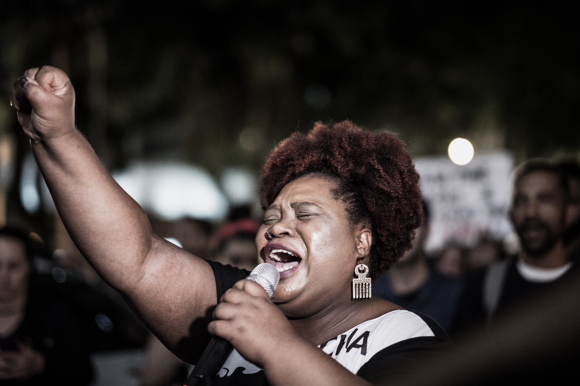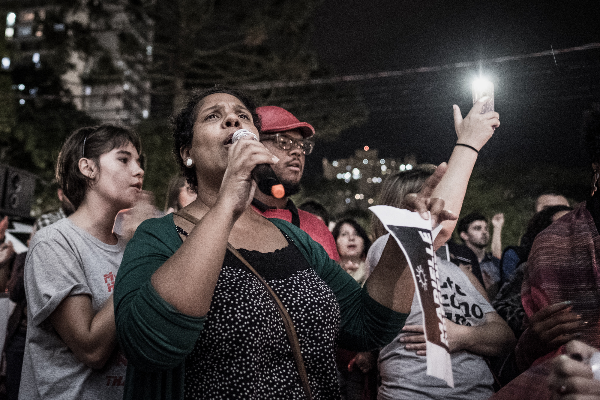 “Empatia com o povo preto”. Esse foi o pedido de Brinsan N’tchala, militante do movimento negro e estudante de Direito em Curitiba. “Todo dia está morrendo preto neste país, olha, 77% dos assassinados são jovens negros. O que está sendo feito?”, questionou. “A Marielle foi um exemplo para mim que sou mulher preta. Se formou, fez mestrado e teve que carregar nas costas o peso de uma comunidade inteira. É sempre assim com a gente, matando tudo no peito. Porque ninguém olha para gente e tem empatia”.