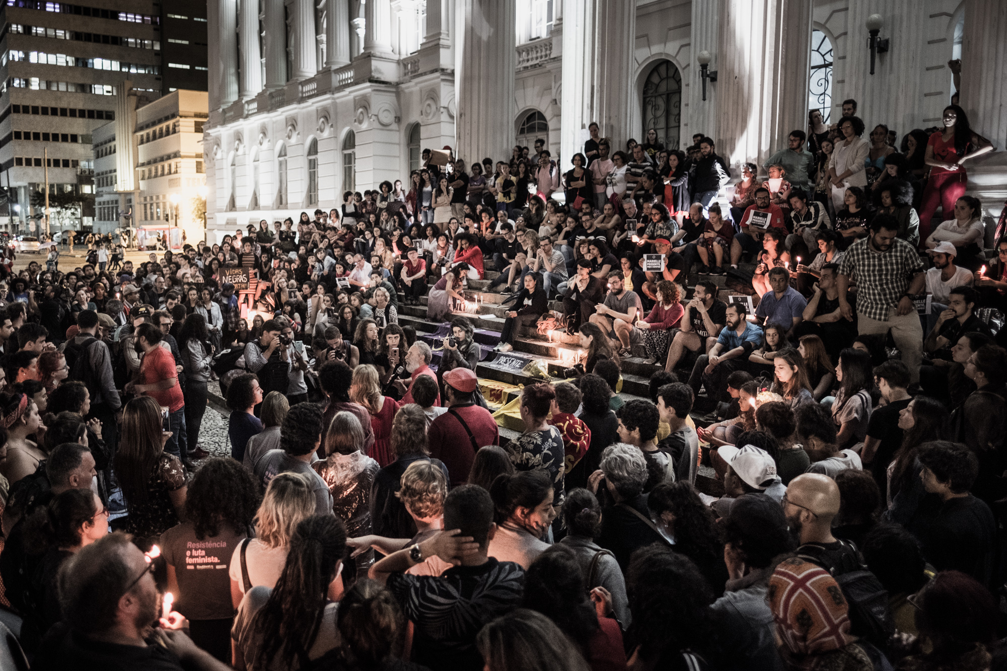 Milhares de pessoas foram às ruas em várias cidades do Brasil ao longo desta quinta-feira (15) em atos em memória à vereadora do Rio de Janeiro Marielle Franco (PSOL) e do motorista que a acompanhava, Anderson Pedro Gomes, ambos executados a tiros na noite de quarta-feira (14) no Rio de Janeiro. As manifestações aconteceram em pelo menos onze capitais. Em Curitiba, 2,5 mil pessoas participaram de uma vigília na escadaria do prédio histórico da UFPR, na Praça Santos Andrade. Com velas, faixas, flores e cartazes, a multidão prestou homenagens à dupla e repudiou a intervenção federal que acontece no Rio de Janeiro.
