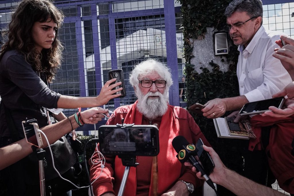 Em entrevista à mídia alternativa, o teólogo denunciou que foi ofendido por policiais militares do Paraná ao tentar visitar Lula na superintendência da PF. “Eles [policiais militares] não deixaram eu entrar, começaram a xingar o Lula e dizer “todos vocês [do acampamento] são bandidos e ladrões”. Mas eles são mandados. Eles tem cabeça de camarão. Não pensam em nada”, declarou.