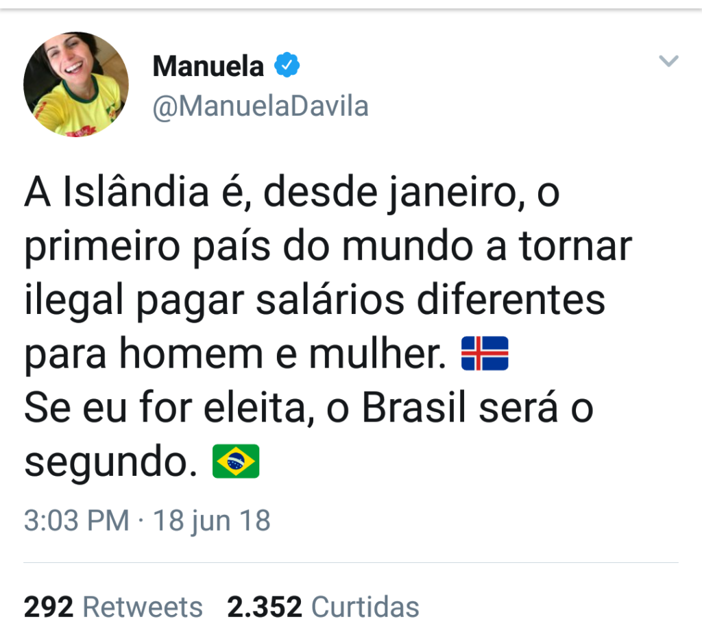 REPLAY | E as associações não param. Bastou o Brasil empatar com a Suíça para comentários dizendo que “levamos de 7 a 1 na educação, saúde e segurança” aparecerem, num novo velho clichê. Um pouco mais criativa foi a pré-candidata Manuela D´avila (PCdoB), informando que na Islândia – aquele país que empatou com a Argentina – uma lei obriga homens e mulheres a terem salários iguais. Já ela, se eleita, tornaria o Brasil o segundo país do mundo. Assim, de forma simples, numa canetada, ou tuitada, a discriminação salarial desaparecia. É uma proposta tão azarona, em meio a um congresso conservador, quanto a própria Islândia chegar à final da Copa.