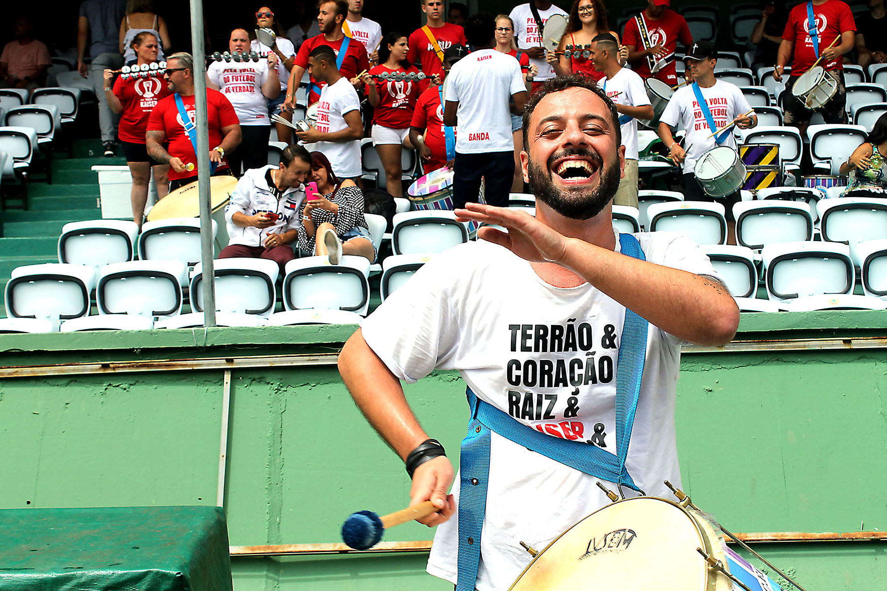 Bateria liberada deu o ritmo nas arquibandas. Foto: Julio Carignano