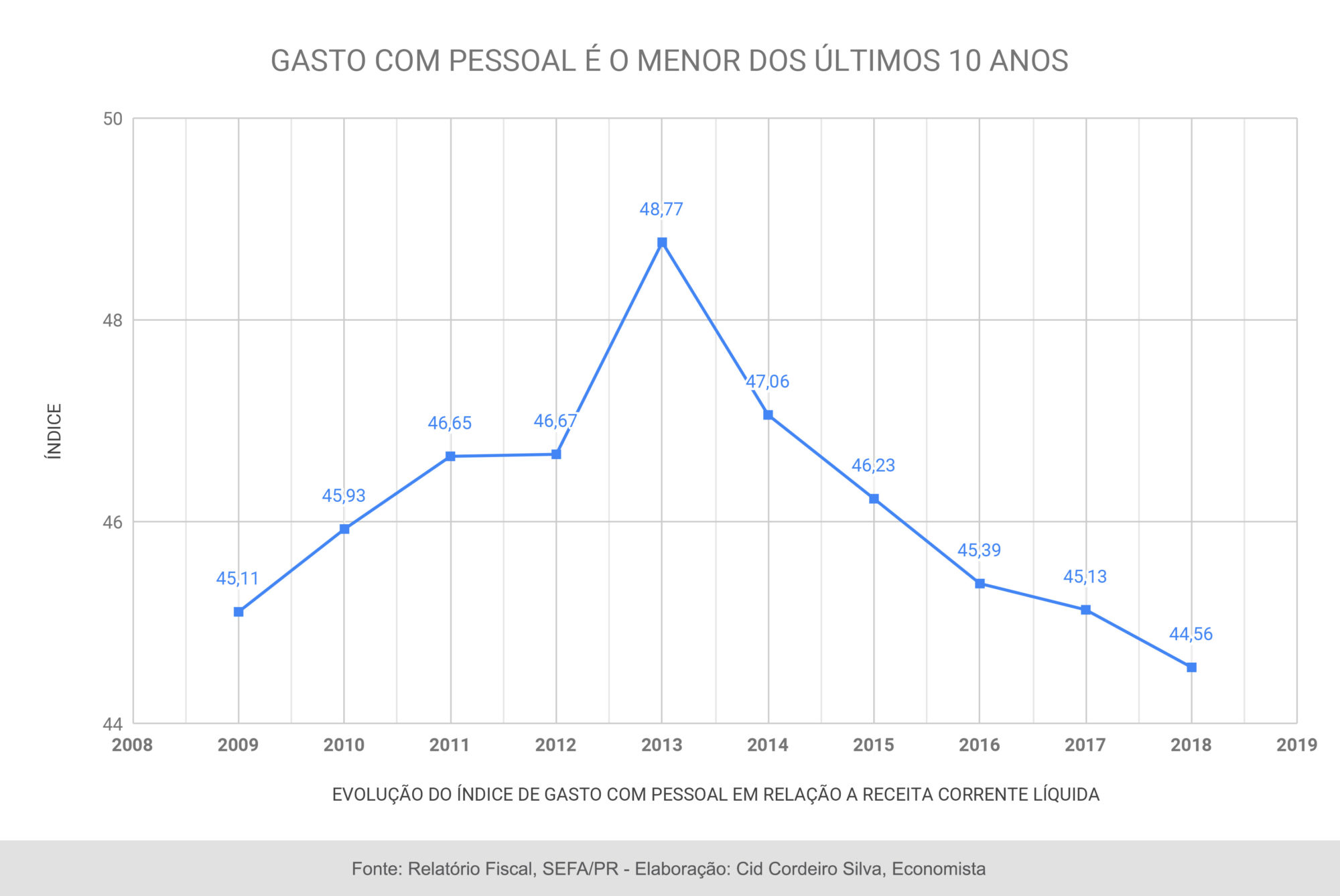 Mas, para a APP, os números revelam que Ratinho recebeu a gestão com o menor percentual de gasto com pessoal dos últimos 10 anos. De acordo com o economista Cid Cordeiro Silva, a folha de pagamento dos servidores é o menor desde 2009. Há 10 anos, o índice era de 45,11%, chegou a 48,77% em 2013 e, desde então, vem caindo sucessivamente. As informações têm como base relatório fiscal da Secretaria da Fazenda.
