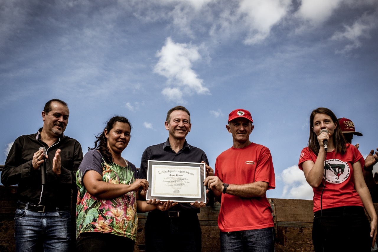 A presença de representantes do poder legislativo municipal, estadual e federal no ato de abertura da festa de 5 anos reafirmaram o apoio recebido pela comunidade. O deputado estadual mais votado do município de Rio Bonito do Iguaçu, Professor Lemos (PT) garantiu que o seu mandato não é individual, e sim coletivo, voltado às demandas da classe trabalhadora paranaense. “Essa luta é nossa, é uma luta que não é antiga, não é de hoje. De fato essa luta precisa ser homenageada, que é pela reforma agrária e pela produção de alimentos saudáveis”, disse Lemos, ao entregar uma placa da Assembleia Legislativa do Paraná com menção honrosa pelos 5 anos de resistência da comunidade.