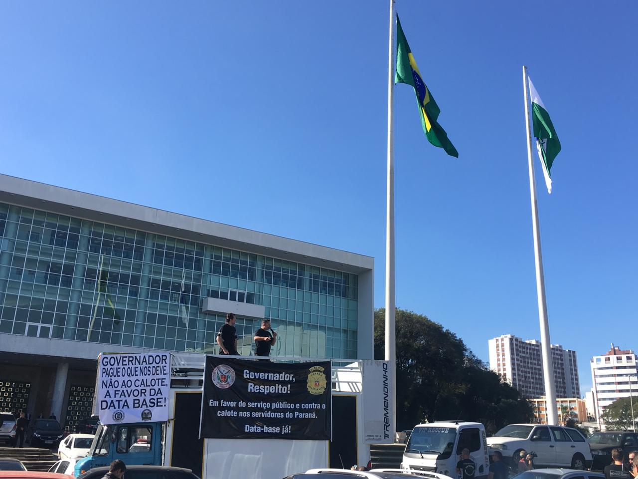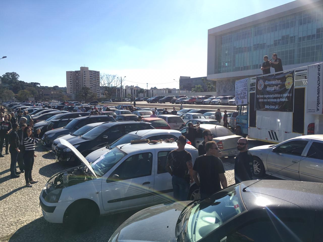 Um dia antes da greve do funcionalismo público do Paraná, policiais civis e delegados realizaram um protesto em frente ao Palácio Iguaçu, sede do governo estadual. Eles entregaram ao governador Ratinho Júnior (PSD) dezenas de carros que estão sem condições de uso. O protesto ocorre em meio a recusa do governador de conceder a reposição salarial dos trabalhadores que estão com salários congelados há três anos.