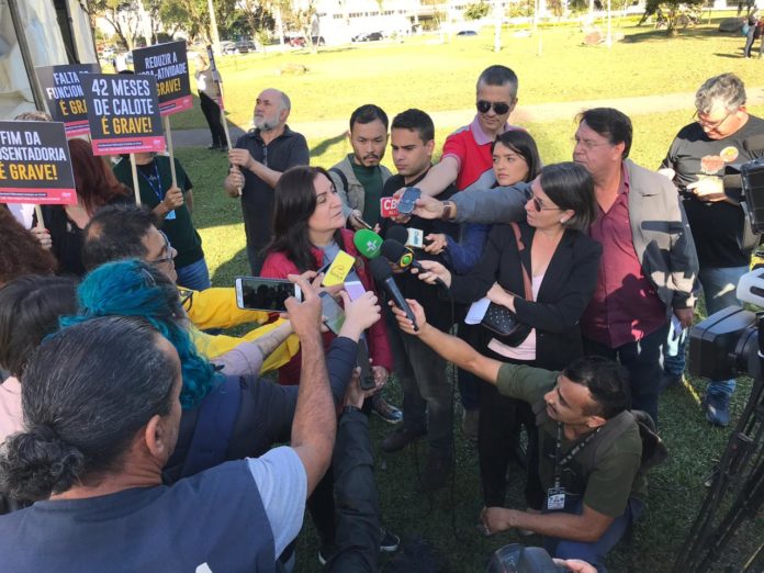 Em Curitiba, servidores se reúnem numa tenta montada em frente ao Palácio Iguaçu. Em varias cidades do interior há atos acontecendo durante todo dia.