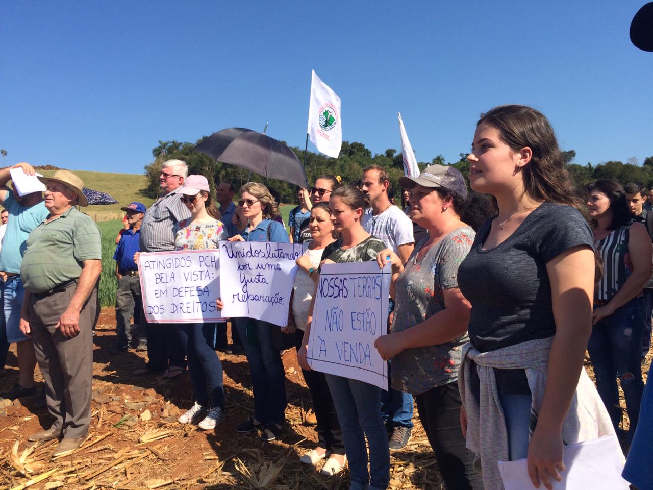 Atingidos pela PCH Bela Vista se reúnem na comunidade Presidente Kennedy no Verê, sudoeste do Paraná, para cobrar da Copel a negociação do Termo de Acordo, documento que propõe as diretrizes de garantia dos direitos das famílias atingidas. A manifestação aconteceu na tarde dessa quarta (07/08) e teve caráter pacífico. A mobilização busca dialogar com a sociedade a condição da população atingida e o plano de desenvolvimento regional, durante e após a construção da obra.