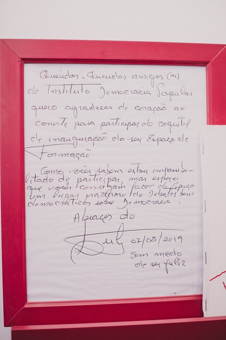 A festa de inauguração contou com uma exposição fotográfica sobre Lula e a Vigília Lula Livre, do repórter fotográfico Joka Madruga, que também expôs projetos autorais que registram a resistência dos atingidos por barragens na região norte do país, além de intervenções do ator paranaense de teatro Jeff Bastos, da artista plástica Gisele Filippetto, do cineasta Gustavo Castro, que realizou o documentário Ribeirão dos Padilhas e a série de vídeos “Cidade ao Redor”, produzidos pelo IDP, e do livreiro Maurício Rodrigues de Souza, organizador do acervo da casa.