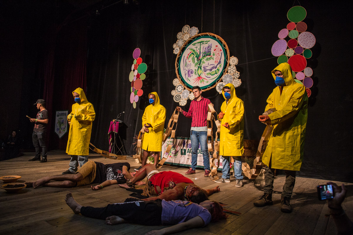 Com as frases “o agro não é pop, o agro é fogo”, os jovens sem-terra criticaram a utilização do veneno pelo agronegócio, relembrando que o setor também patrocina ações violentas como as queimadas que estão destruindo a Amazônia nas últimas semanas.