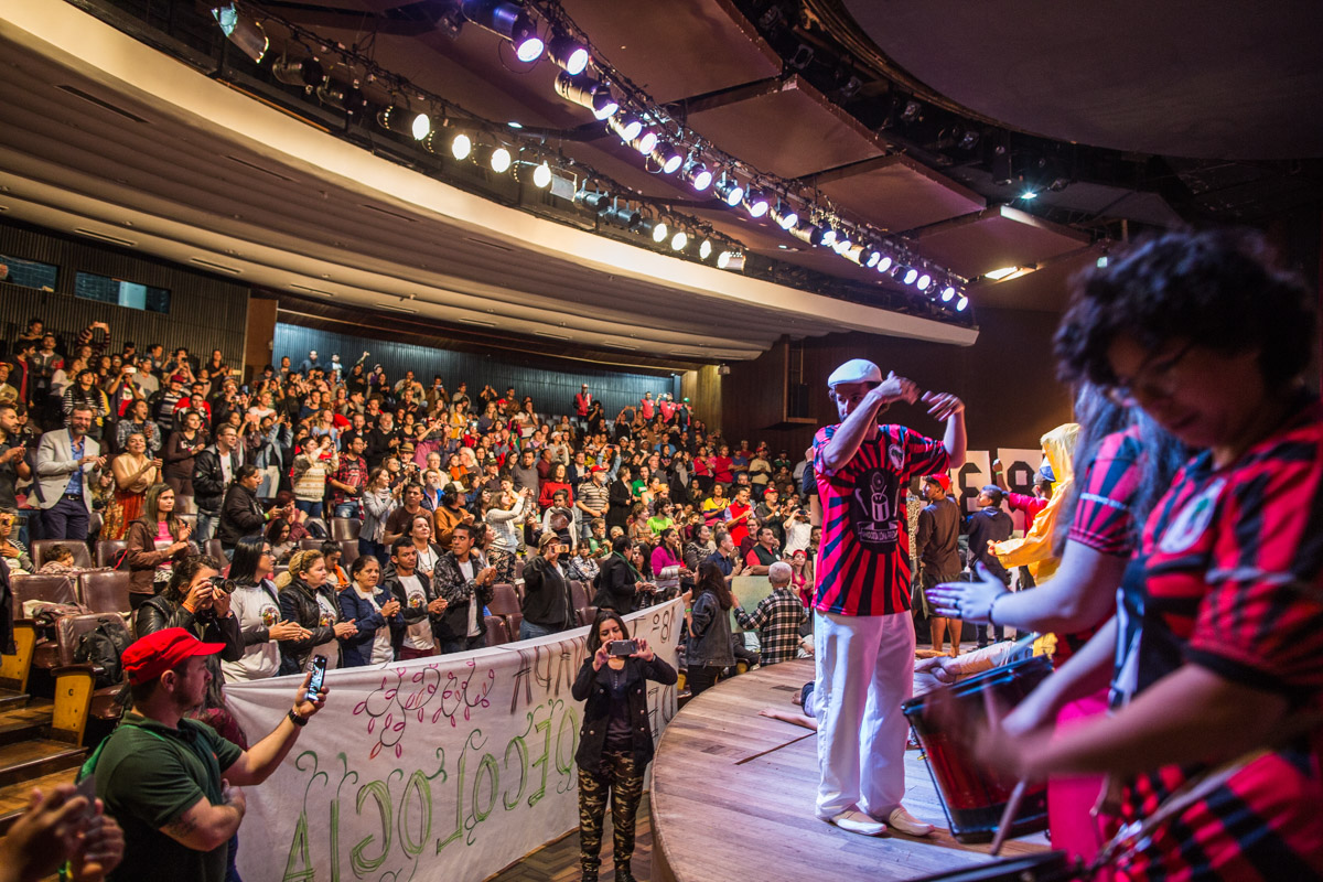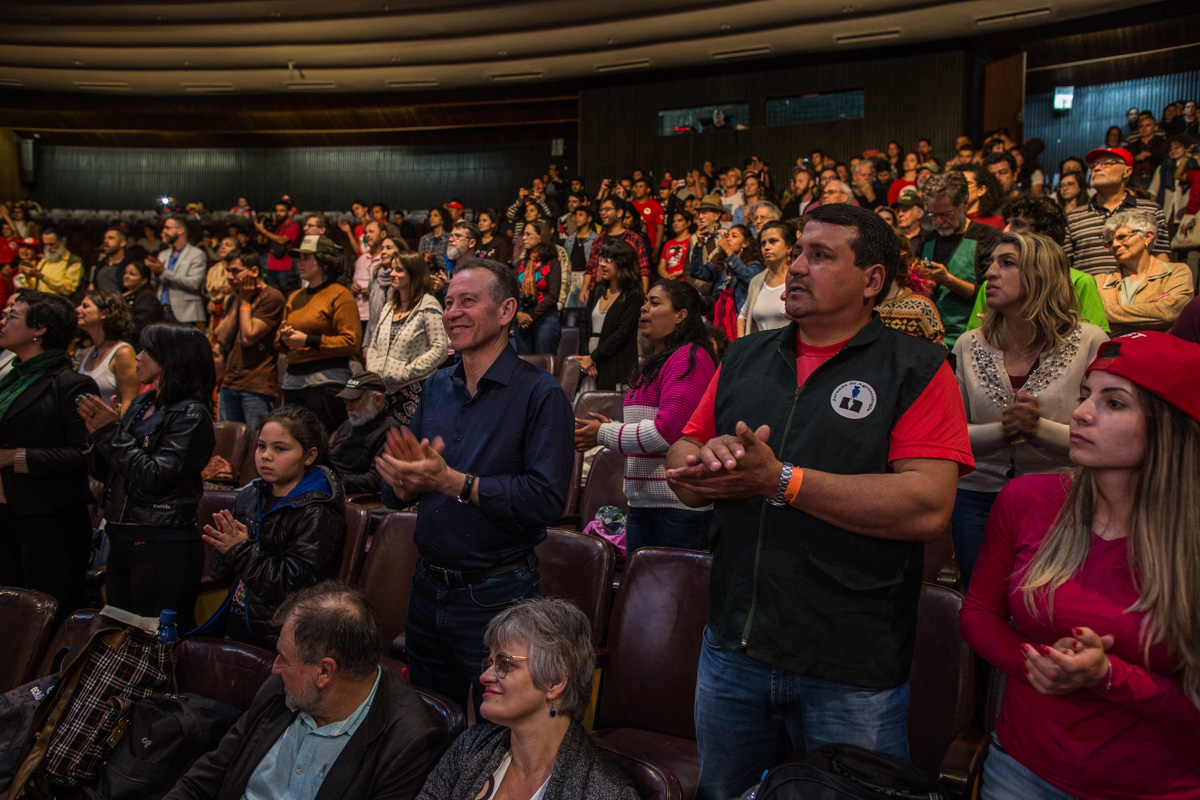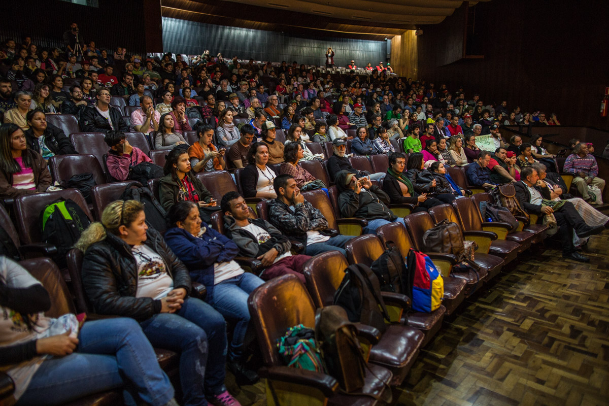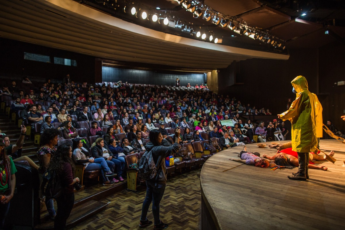 Teatro da reitoria da UFPR ficou lotado na noite desta quinta-feira (29). Foto: Leandro Taques
