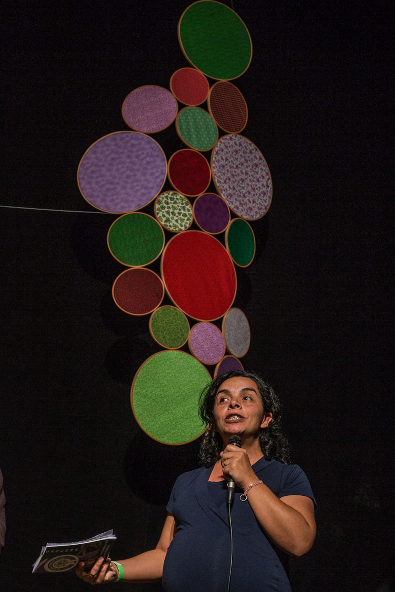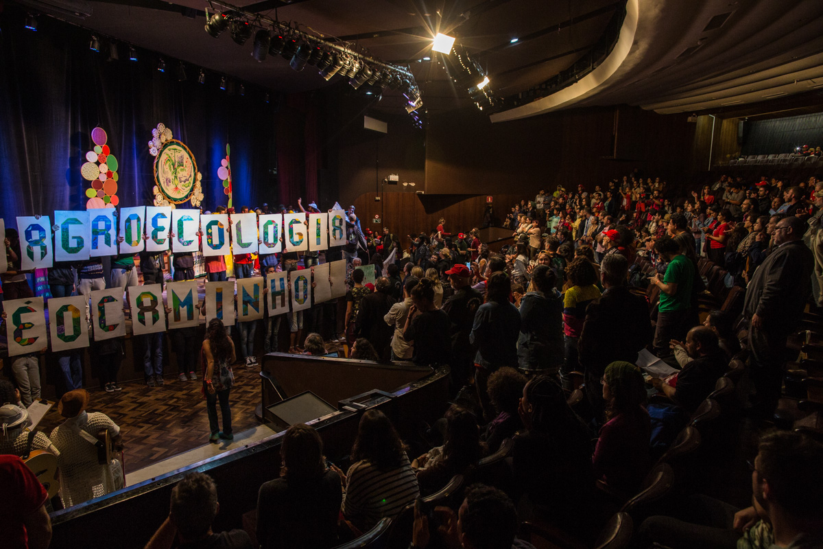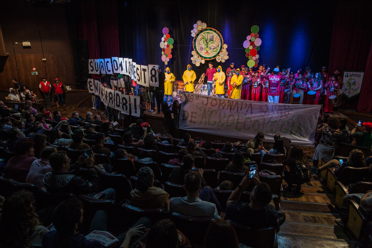 “A agroecologia toca as diversas esferas da vida. Se constitui como prática social, como luta, como ciência. Produz alimentos saudáveis, fortalece a saúde, cuida da terra. Preserva as águas, resgata e valoriza os conhecimentos e práticas ancestrais. Exige que o Estado se responsabilize na execução de políticas e programas. Por uma terra livre de transgênicos e sem agrotóxicos, cultivando a biodiversidade e colhendo a soberania alimentar, construindo um projeto popular para a agricultura. Viva as jornadas de agroecologia”, declamou a atriz.