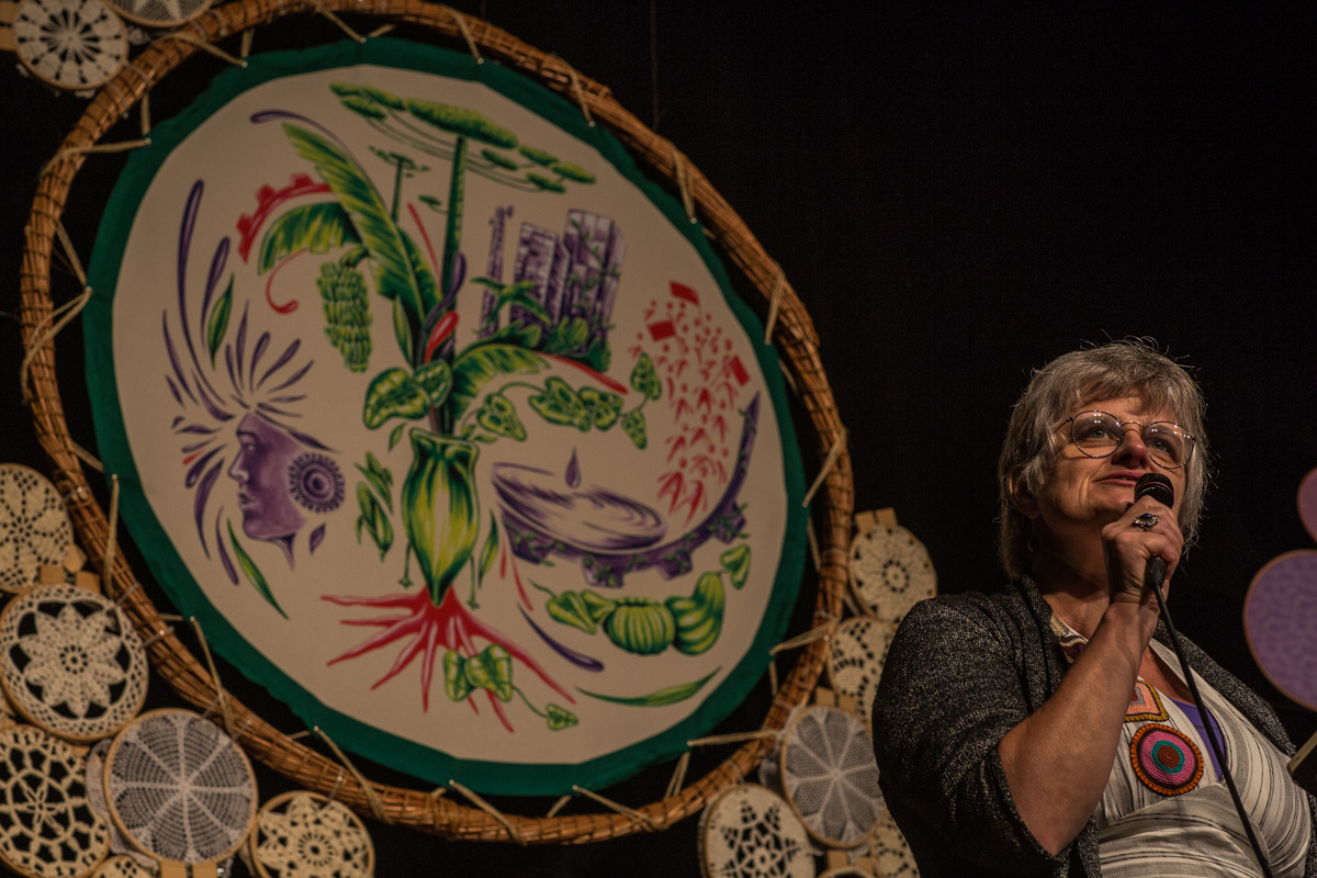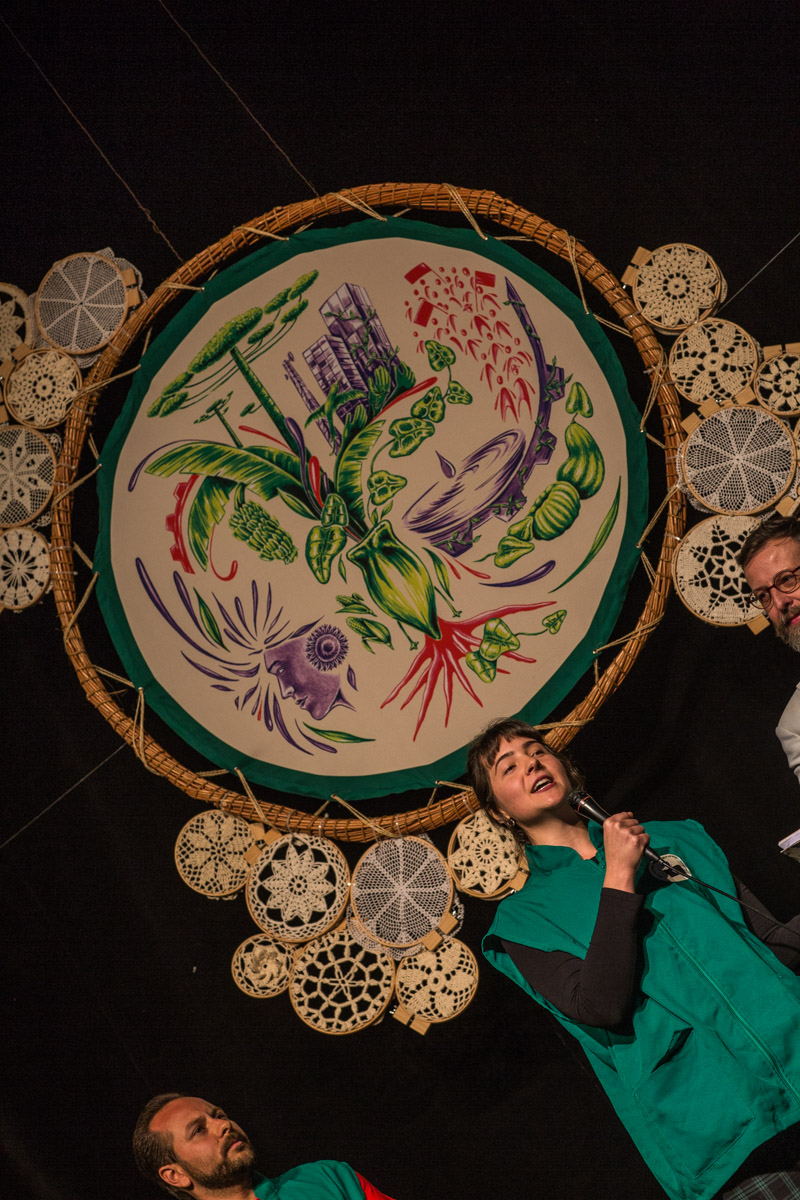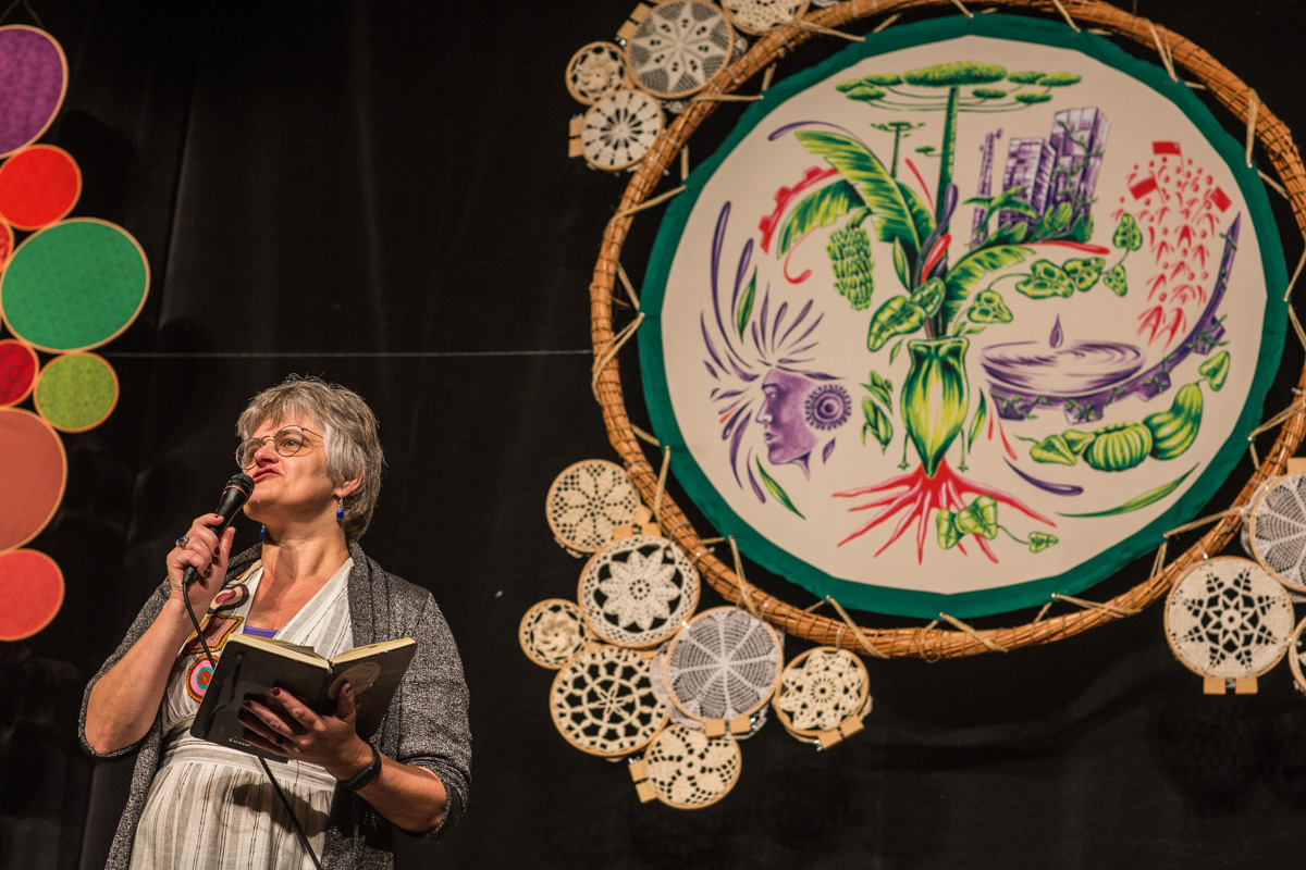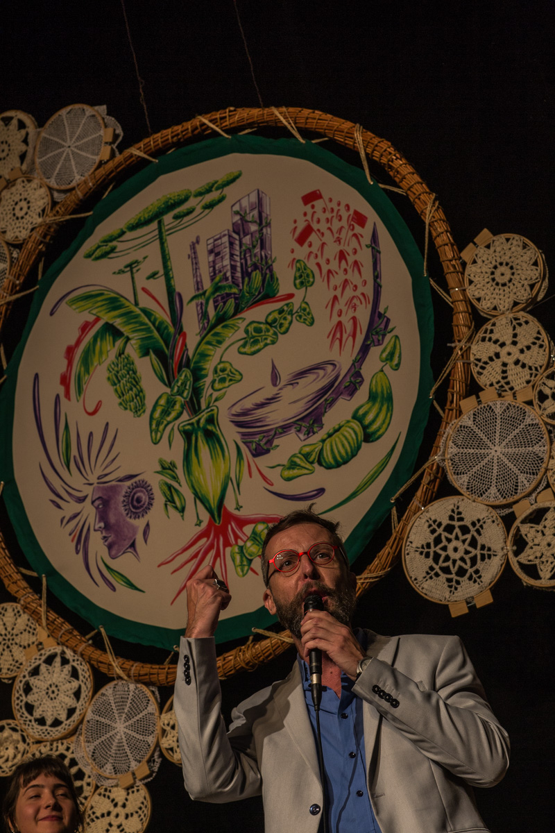 “A agroecologia toca as diversas esferas da vida. Se constitui como prática social, como luta, como ciência. Produz alimentos saudáveis, fortalece a saúde, cuida da terra. Preserva as águas, resgata e valoriza os conhecimentos e práticas ancestrais. Exige que o Estado se responsabilize na execução de políticas e programas. Por uma terra livre de transgênicos e sem agrotóxicos, cultivando a biodiversidade e colhendo a soberania alimentar, construindo um projeto popular para a agricultura. Viva as jornadas de agroecologia”, declamou a atriz.