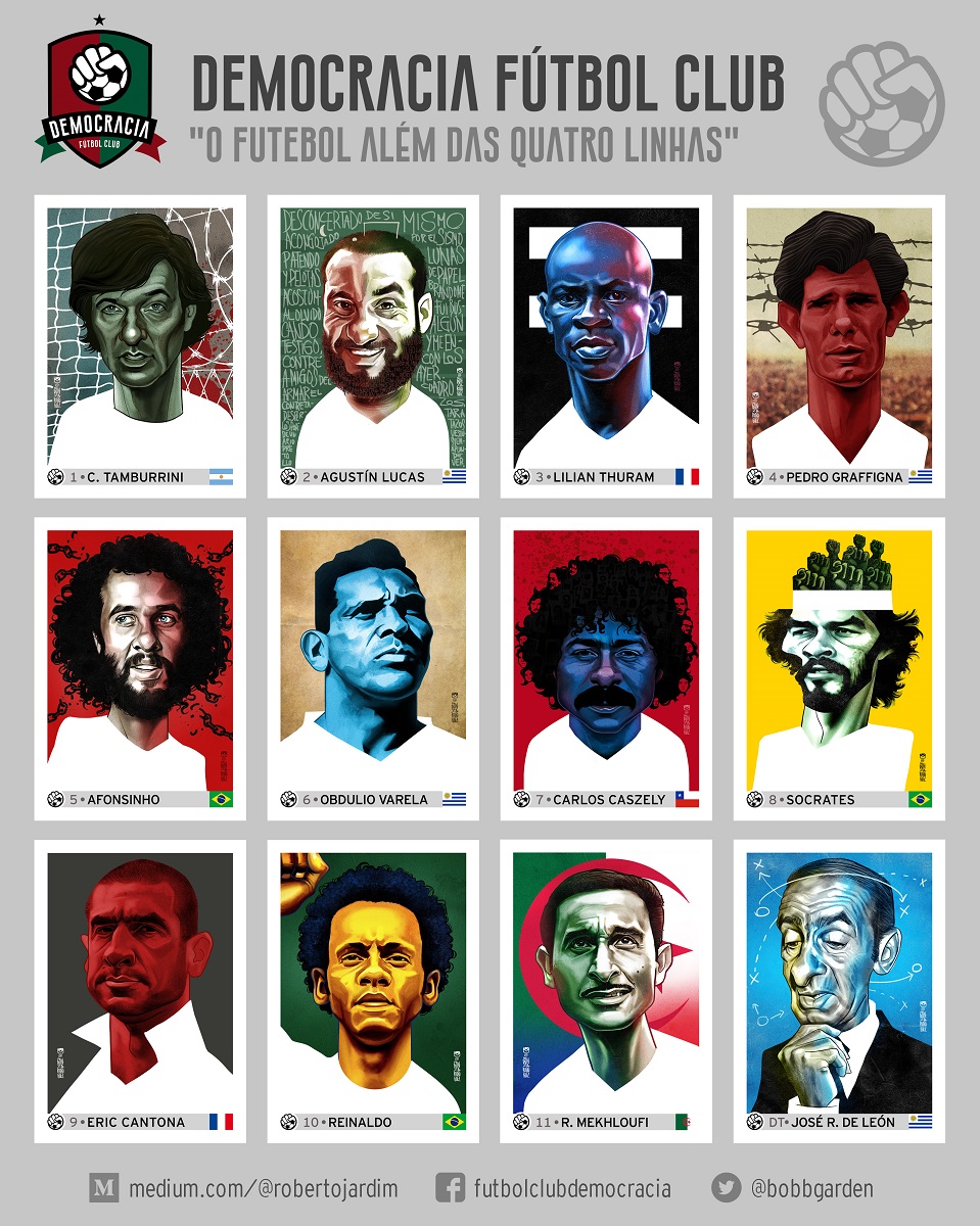 Para quem não conhece o projeto, o também jornalista Eduardo Rodrigues resume no texto de apresentação da obra: “Roberto Jardim traz à tona um inventário de vozes que ecoaram para além dos gramados. Vozes de homens que não se curvaram diante de adversários no campo e na política. Jardim foi cirúrgico nas escolhas e preciso nas descrições. Desceu as escadarias que levam ao túnel para escalar 11 craques e um treinador que travaram lutas dentro e fora das quatro linhas”.