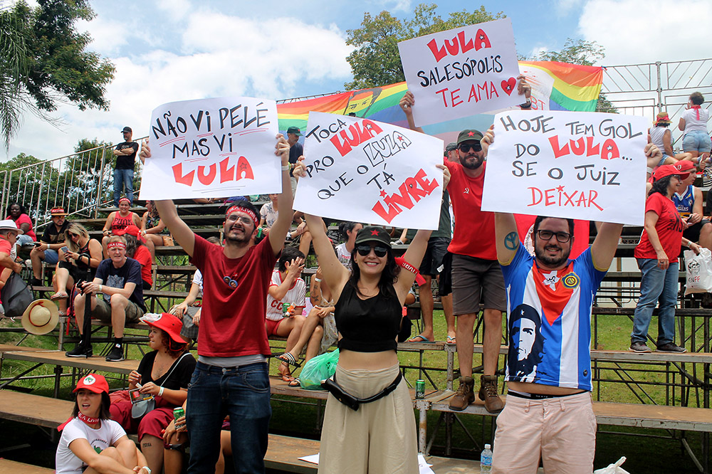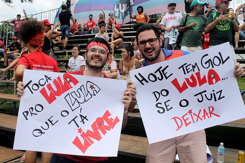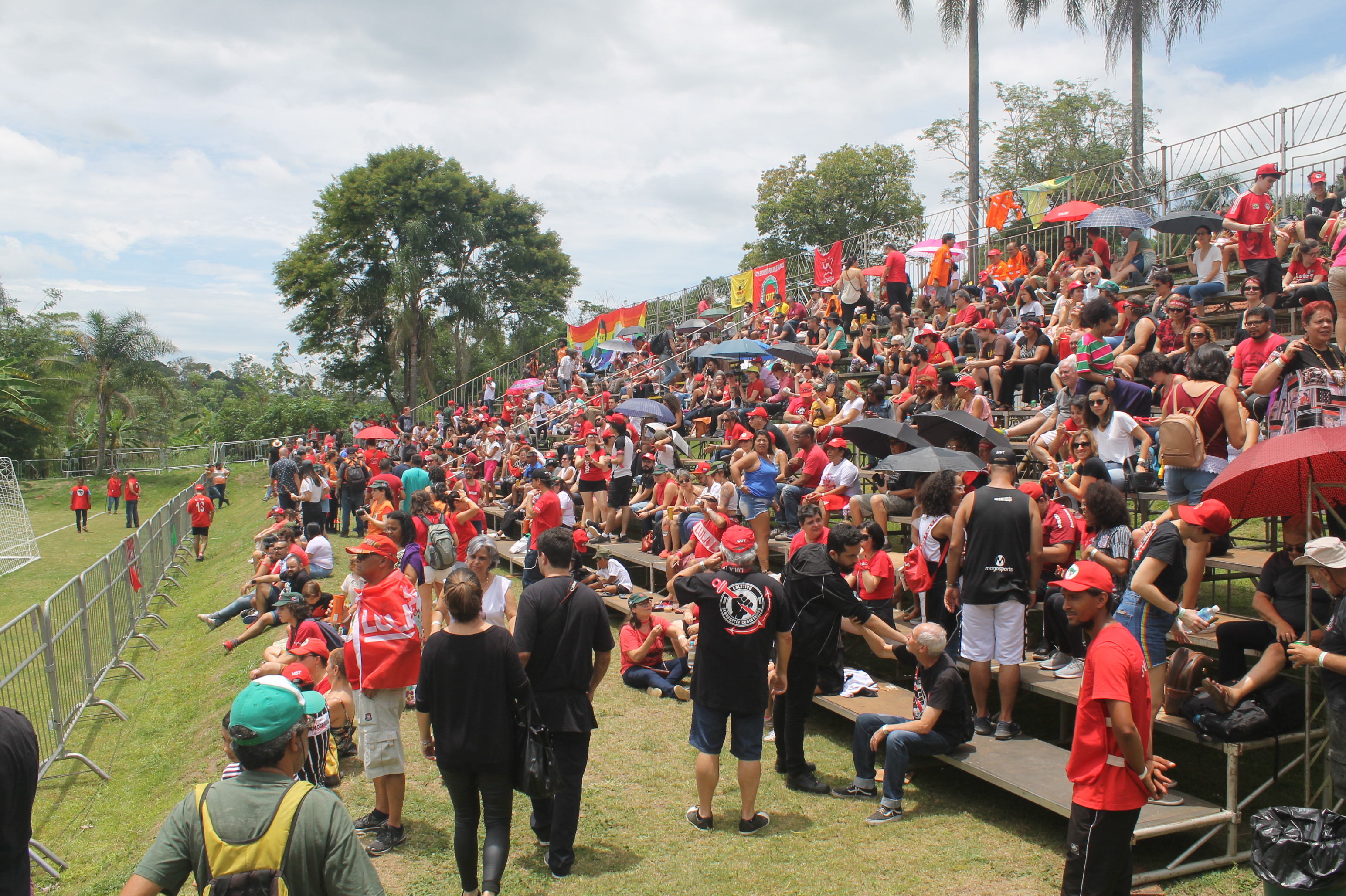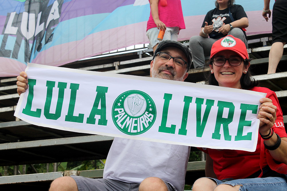 Mariane Rezende, de Uberlândia (MG), também veio com familiares acompanhar o marido Marcelo jogar pela equipe dos Amigos do MST. Em meio a torcida a pequena Moara, de apenas 1 ano e meio, era atração. “A gente estava com medo dele [Lula] não estar livre neste momento. É gratificante participar deste momento, vestir essa camisa do Lula Livre sem ser repreendida em um momento de liberdade atacada”, afirmou.