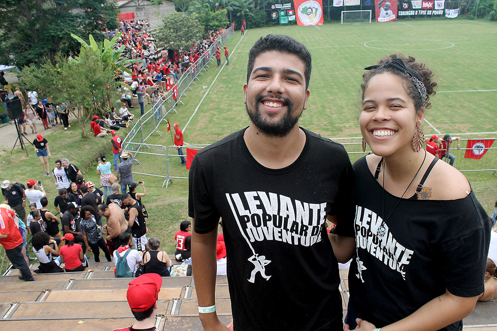 Mineiro de Belo Horizonte, Guilherme Vaz veio passar o fim de ano na casa da namorada Maria Eduarda, em Guarulhos (SP). O casal aproveitou a oportunidade para prestigiar a festa em Guararema. “Está sendo uma festa muito bonita que envolve a luta pela reforma agrária e cultura popular”, disse Guilherme. “É um momento simbólico de Lula livre e nos braços do povo”, completou Maria Eduarda.