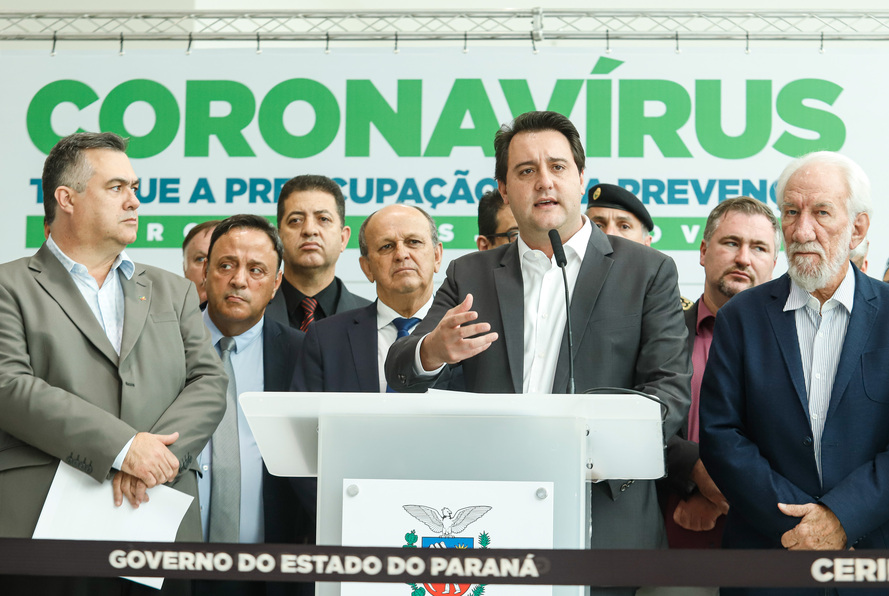 O governador Carlos Massa Ratinho Junior anunciou uma série de medidas que estão sendo adotadas pelo Estado para reforçar os cuidados contra a proliferação do coronavírus no Paraná. O decreto estadual assinado nesta segunda-feira (16) é focado na prevenção e busca atenuar a disseminação da doença, diminuindo a circulação de pessoas e evitando aglomerações. Entre essas medidas está a suspensão das aulas por tempo indeterminado. O funcionamento de equipamentos públicos também vai sofrer alterações.