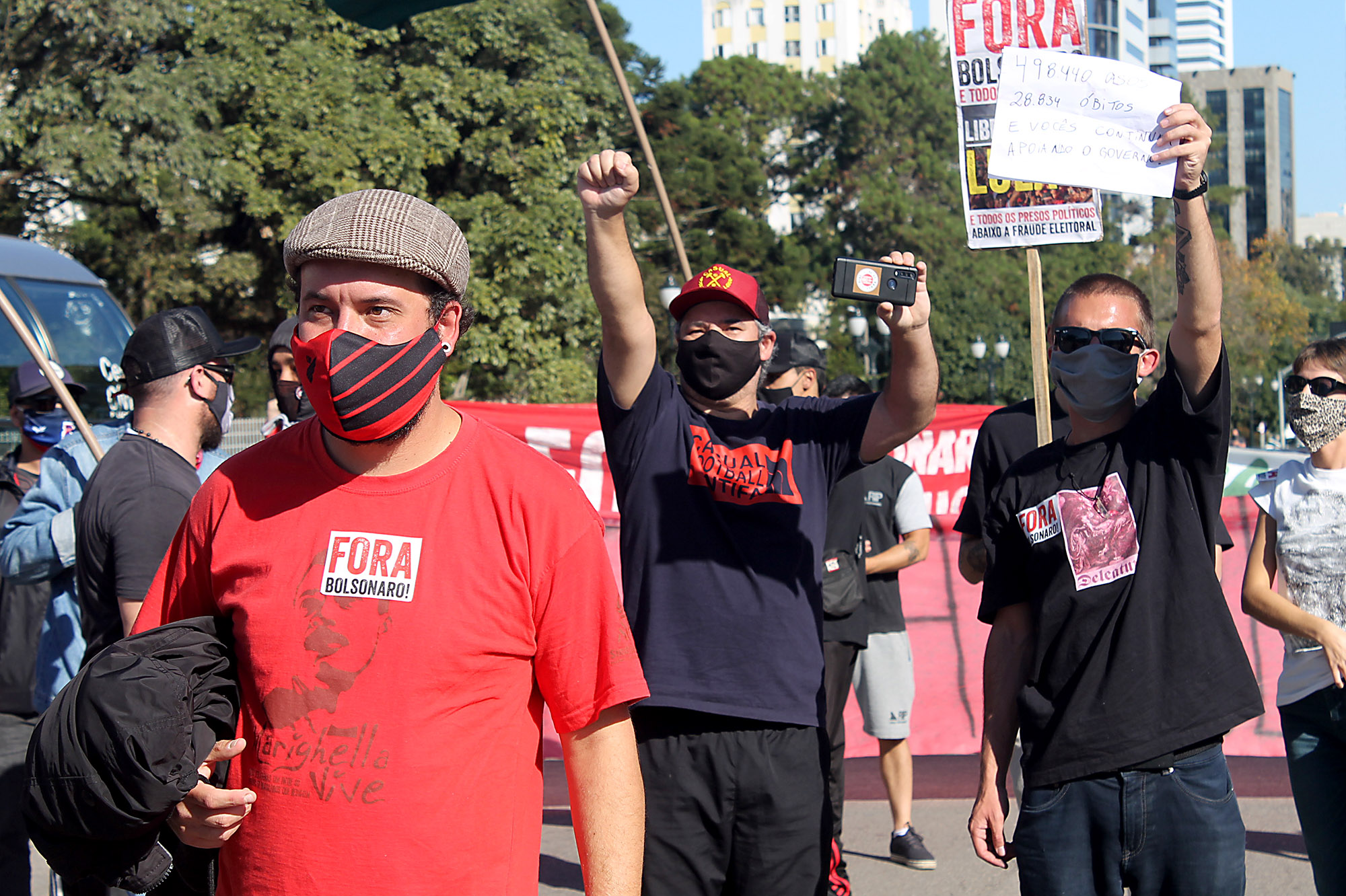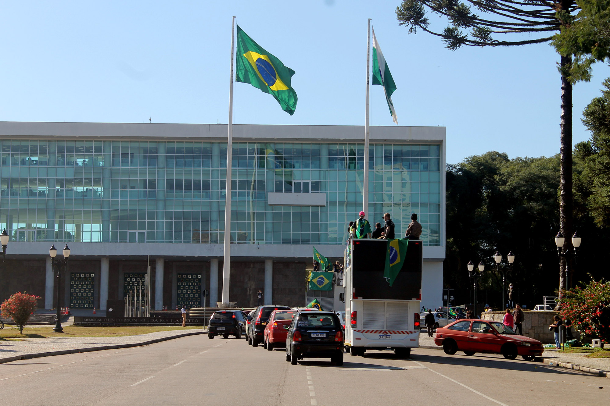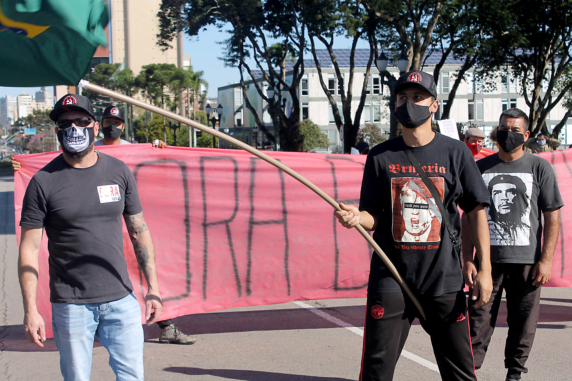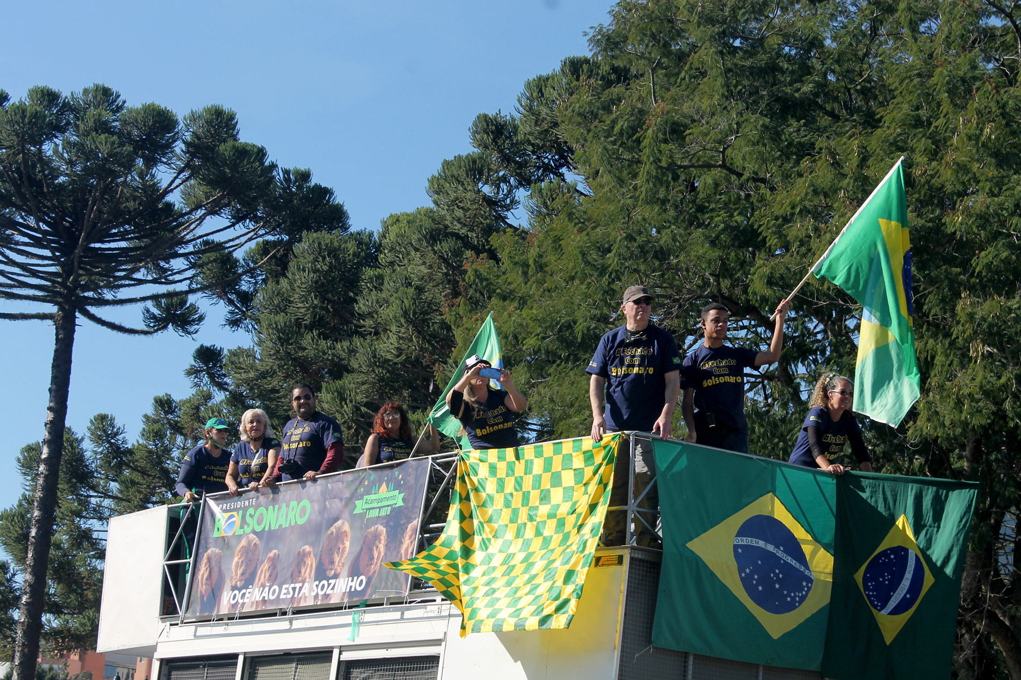 Cerca de 100 manifestantes, na maioria integrantes de coletivos antifascistas de torcedores do Atlético, Coritiba e Paraná Clube, além de militantes do Partido da Causa Operária (PCO), bloquearam no início da tarde a Avenida Cândido de Abreu, no Centro Cívico, local onde iniciaria uma carreata convocada por bolsonaristas. A Polícia Militar foi acionada e fez um cordão de isolamento separando os dois grupos.