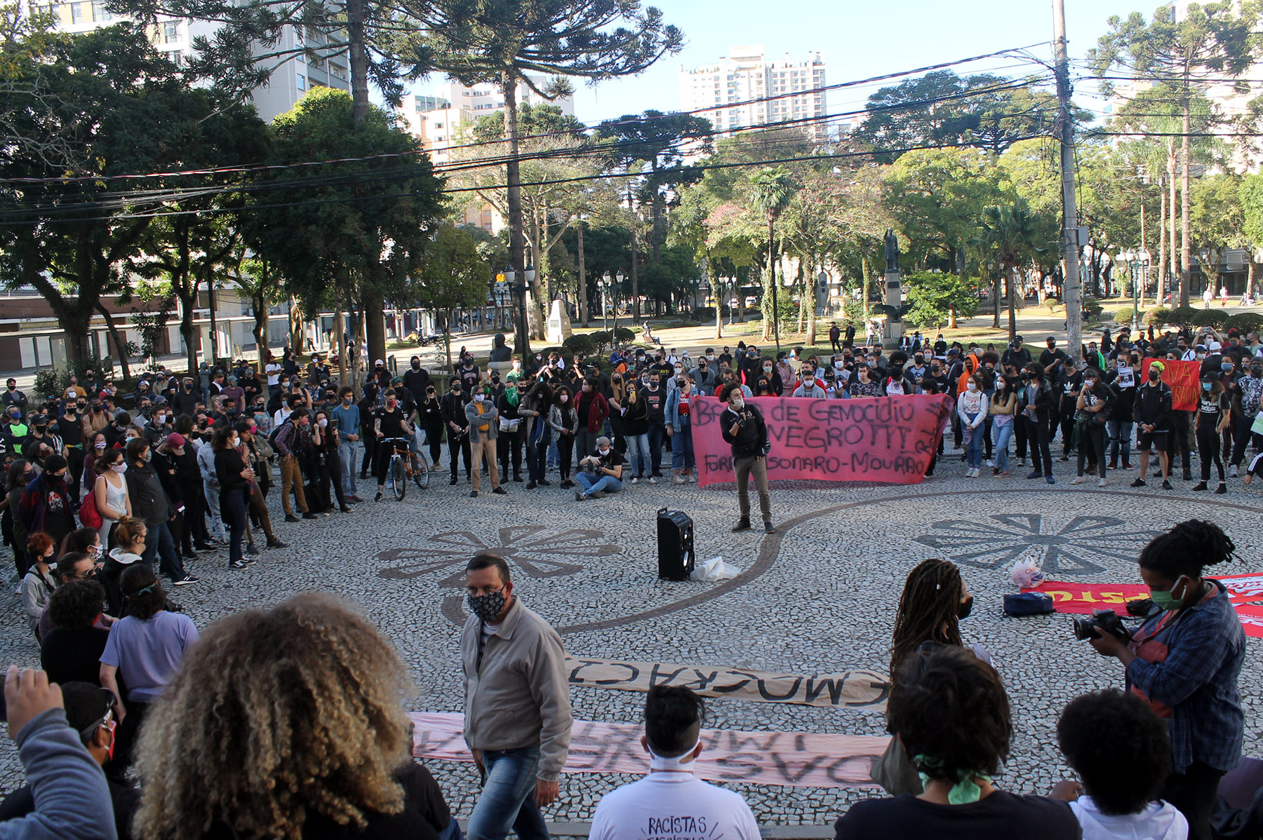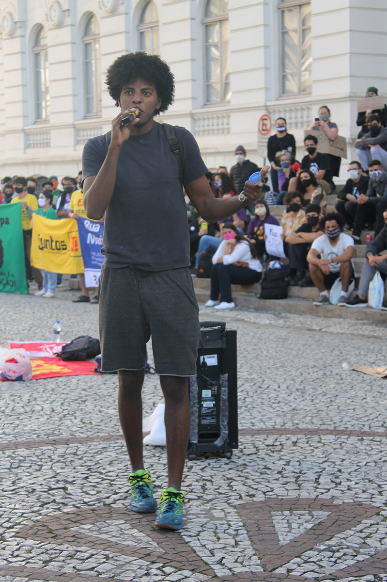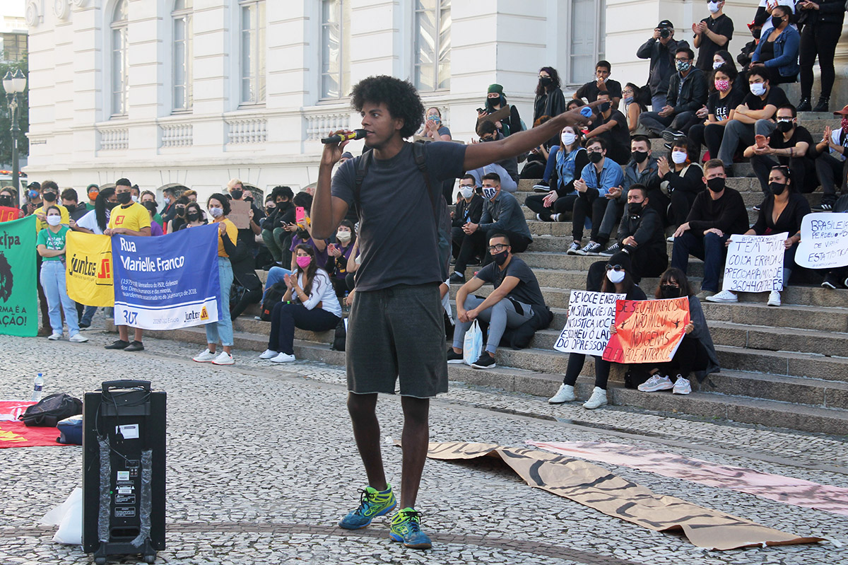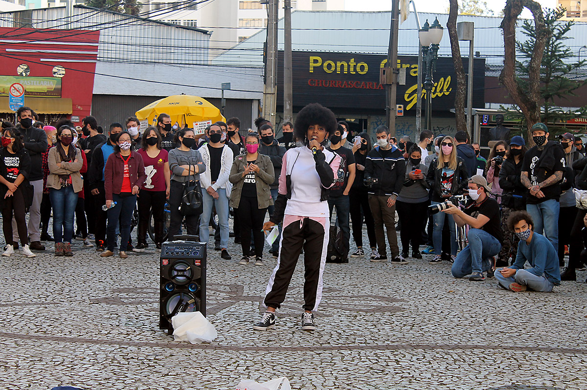 Todo esse aparato chamou a atenção dos manifestantes que compararam aos esquemas montados pela polícia durante atos convocados por bolsonaristas em Curitiba. “Nas carreatas que fazem, a polícia está lá simplesmente para protege-los. Nas nossas eles estão para vigiar, para nos constranger. Eu vim aqui com medo e estou com medo de como será minha volta para casa”, disse a estudante negra Natasha Silva, do coletivo Rebeldia. A jovem afirmou que, apesar das intimidações, é fundamental estar nas ruas. “O movimento negro precisa se organizar junto à classe trabalhadora”, acrescentou.