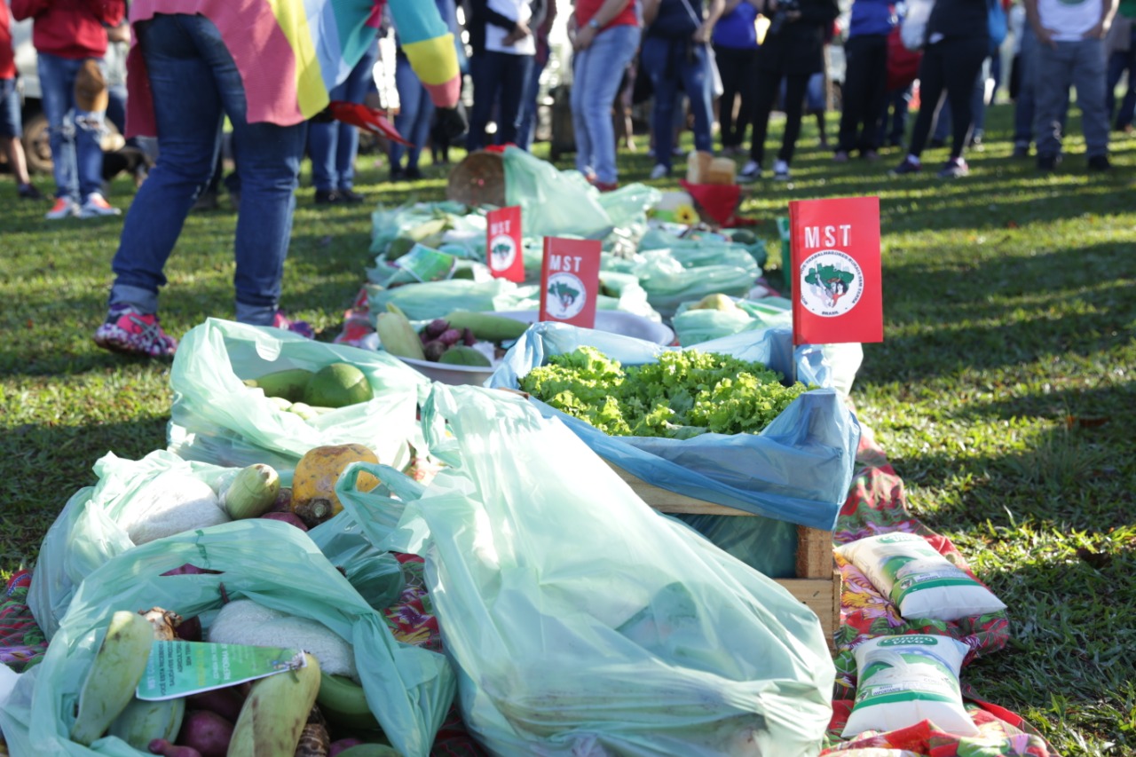 Cada sacola distribuída neste sábado carregou cerca de 14 quilos de grande variedade de produtos frescos, colhidos nas roças e hortas dos camponeses, ou produzidos por eles. Além de arroz, feijão, milho verde, uma grande variedade de tubérculos, frutas, hortaliças e legumes, 4.700 litros de leite integral foram doados por famílias associadas a cooperativas do MST na região norte. Pães, bolachas e sabão caseiros também fizeram parte do kit doado.