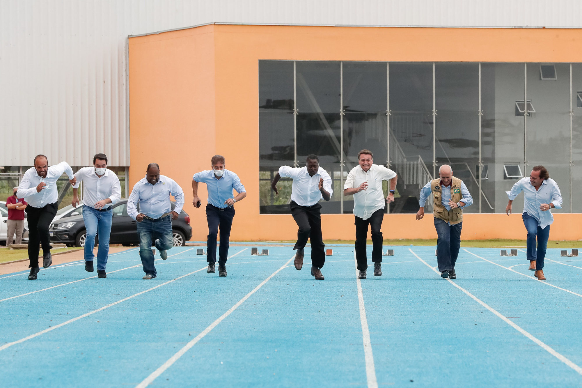 Presidente da República Jair Bolsonaro convida as demais autoridades a participarem de uma corrida na pista do CNTA. Foto: Alan Santos/PR